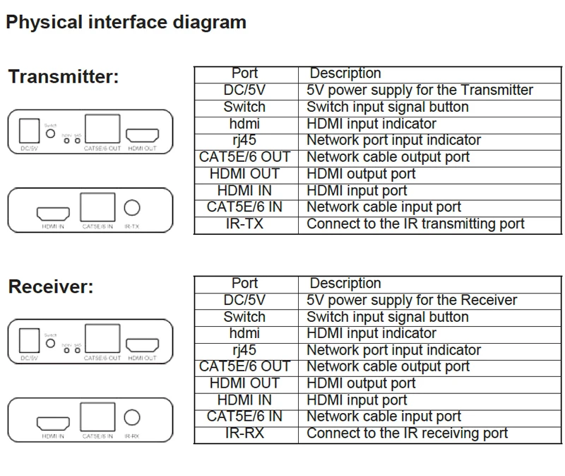 Longitud del cable CAT-5E/CAT-6 entre Rx y TX...................hasta 60 metros