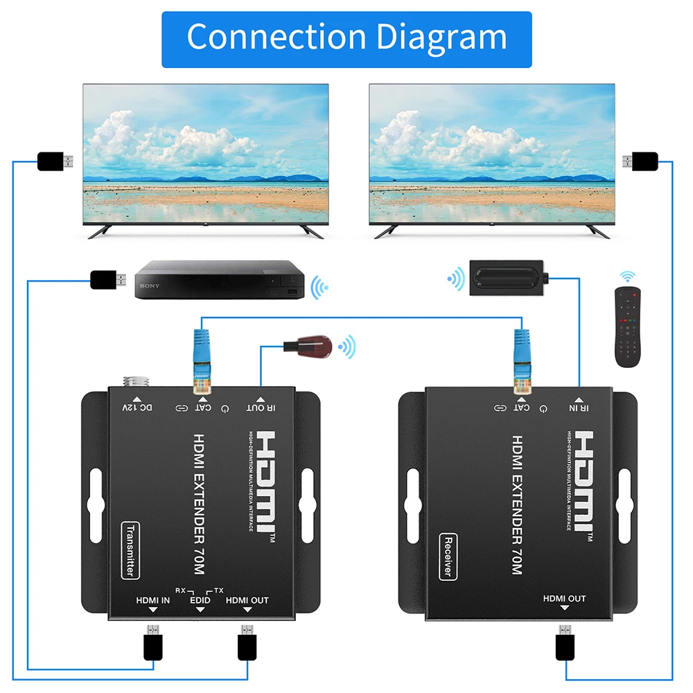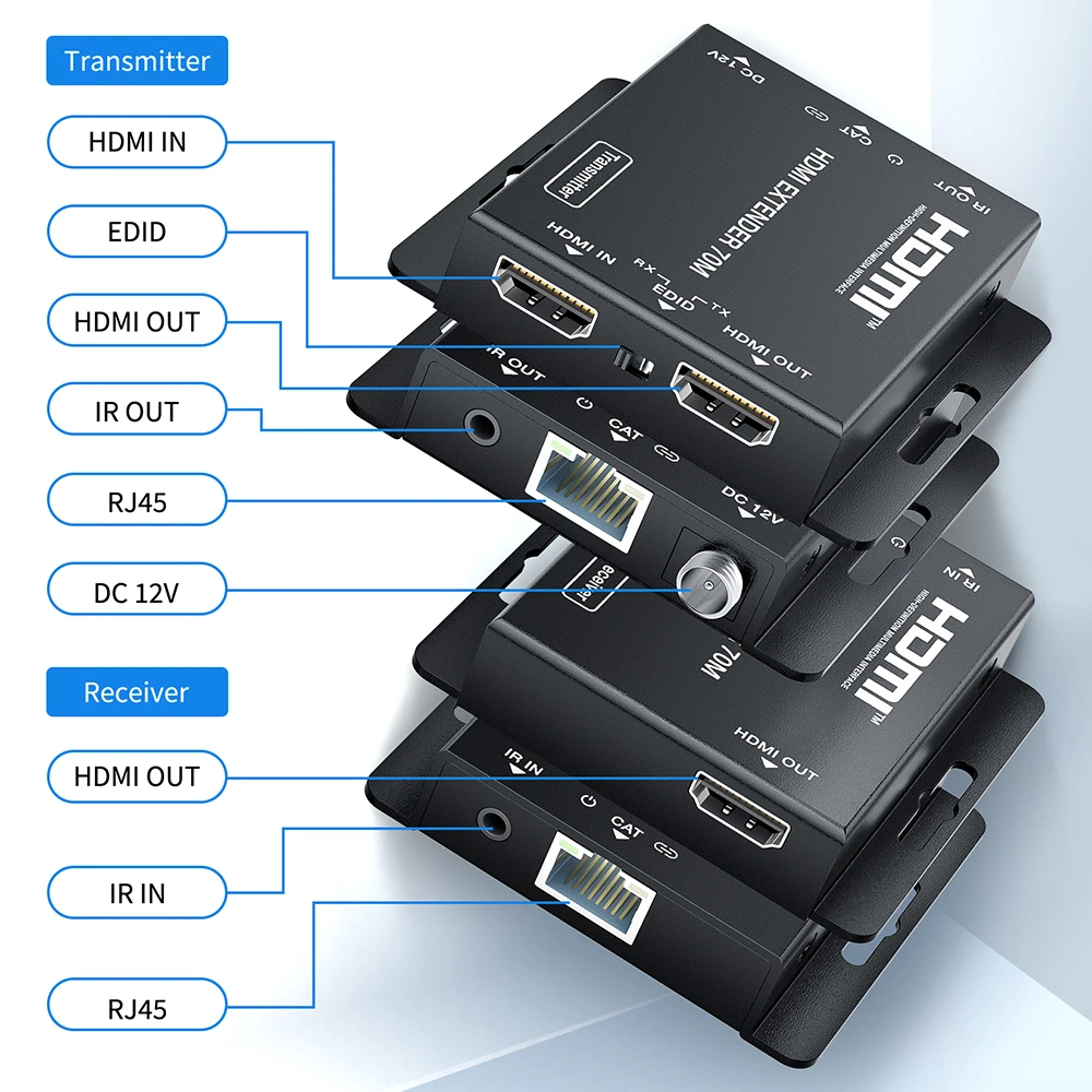 Comprar Extensor HDMI 4K sobre cable Cat6/7 hasta 70M 230 pies Extensor HDMI 4K con salida de bucle IR y HDMI para HDTV apple TV PS4 PC