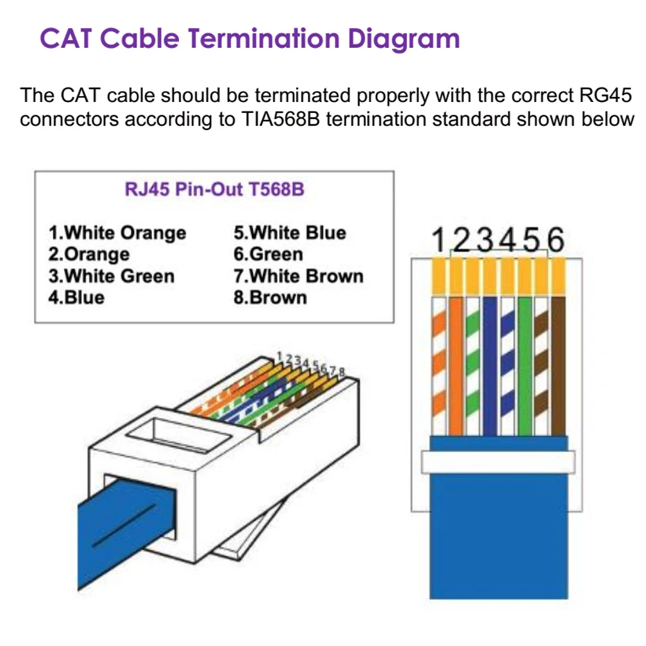 2) Para una experiencia de vídeo confiable y placentera, utilice un cable cat5e/6/7 calificado.