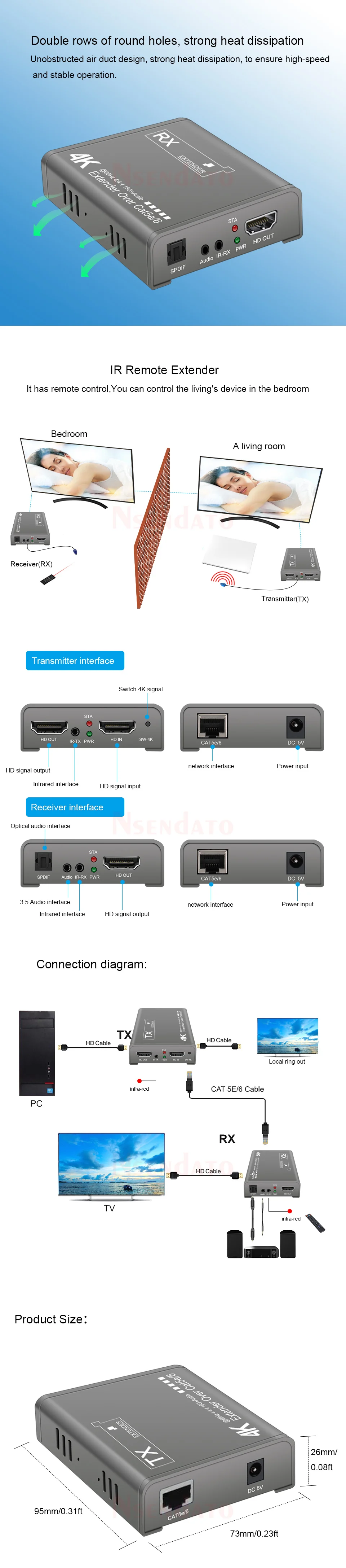 Extensor HDMI 60M sobre RJ45 4K 60Hz 60M extensor HDMI vídeo Audio a RJ45 extensor de cable de extensión de red para PS4 TV PC