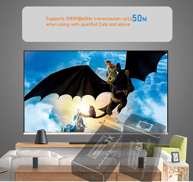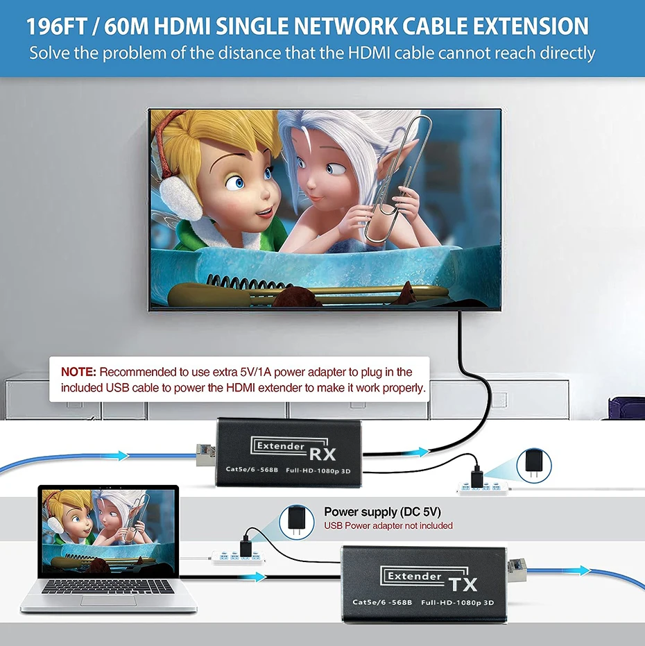 Comprar Extensor HDMI de Cable Cat5e/6 de hasta 50M 1080P HDMI UTP extensor sobre cable Ethernet 1080P 60Hz POC extensor HDMI para PC HDTV