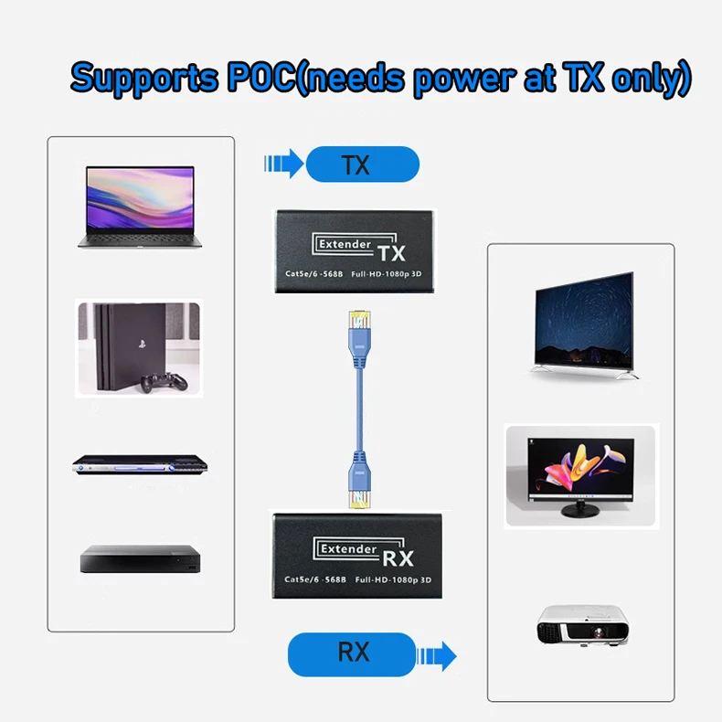 5)The HDMI Extender suppports POC(power over cable). and for most devices,it needs power supply at TX only.