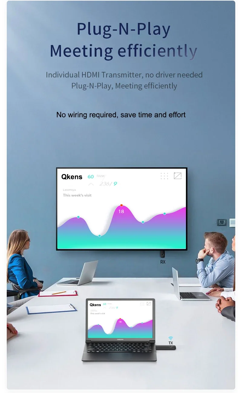 Este extensor Qkens HDMI incorporado protocolo de transmisión inalámbrica, puede transmitir de forma inalámbrica señal de audio y video HD,