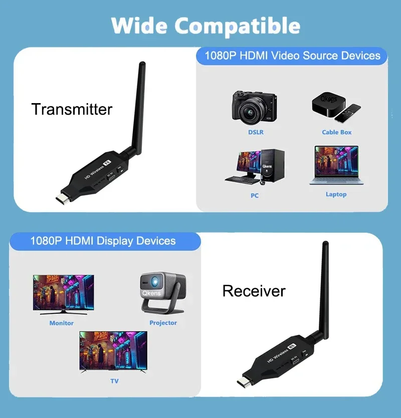 1.Transmisión de audio y vídeo HDMI a través del protocolo de transmisión inalámbrica incorporado, sin necesidad de wifi ni Internet