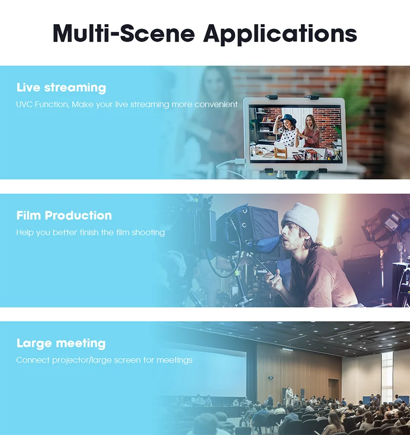 Admite transmisión inalámbrica Full HD 1080P. No es necesario instalar el controlador, no se necesita WiFi ni Internet en casa.