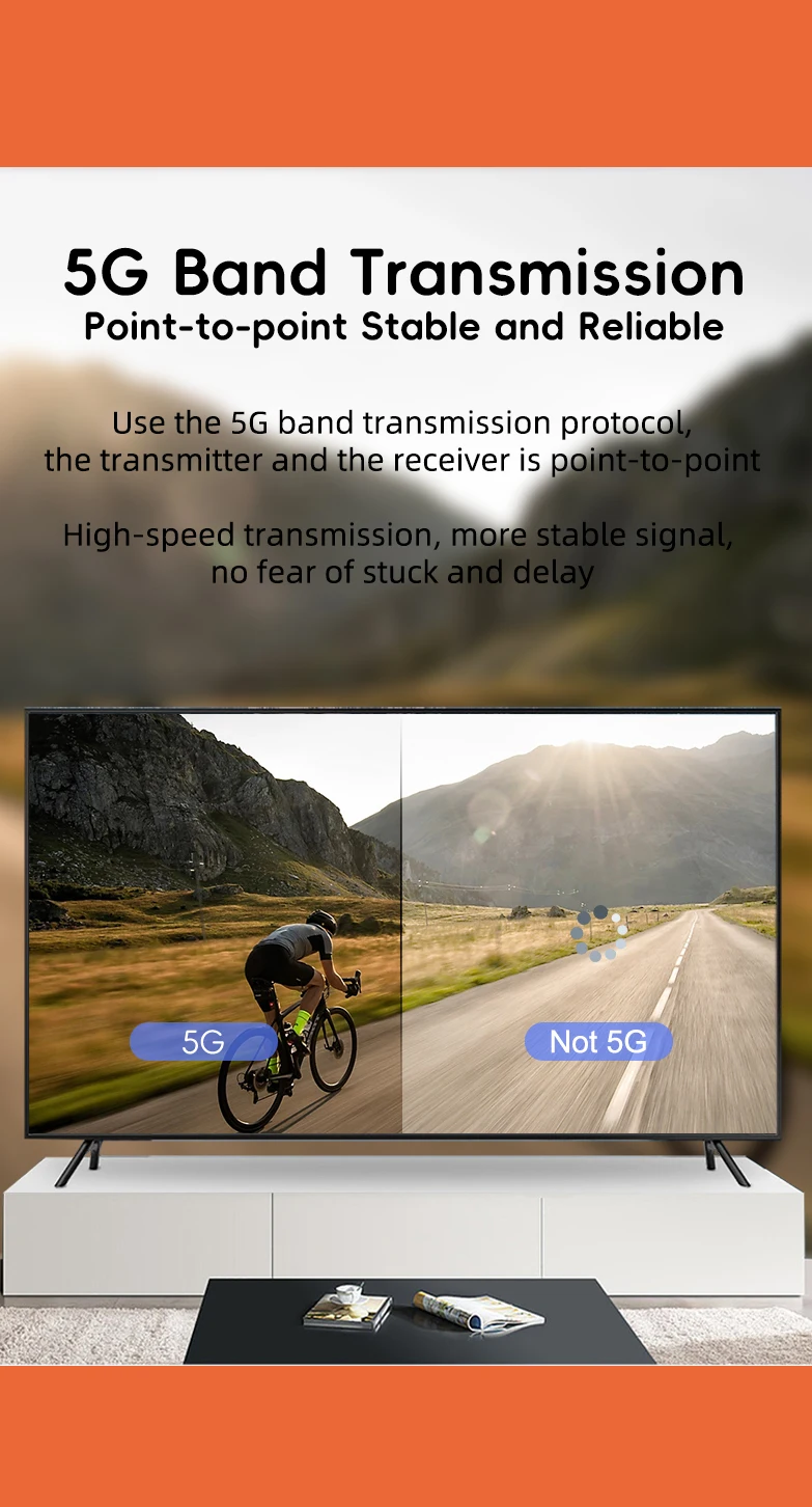 1. Transmisión de video y audio HDMI a través del protocolo de transmisión inalámbrica incorporado, sin necesidad de WiFi o internet