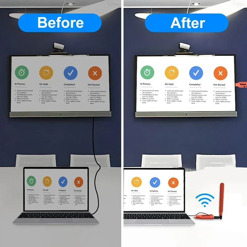 1. Transmisión de video y audio HDMI a través del protocolo de transmisión inalámbrica incorporado, sin necesidad de WiFi o internet
