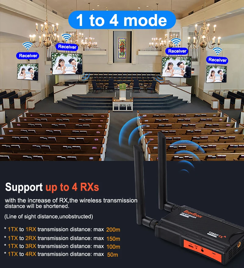 Comprar Extensor HDMI inalámbrico de 200m, transmisor y receptor de transmisión inalámbrica de Audio y vídeo para cámara, TV Box, portátil, PC, proyector de TV
