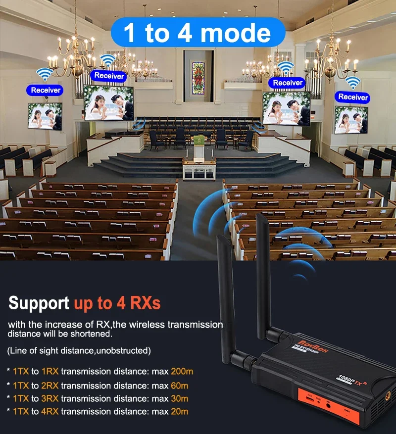 Comprar Extensor HDMI inalámbrico de 200M, transmisor y receptor de vídeo para cámara, PS4, PC a Monitor, 1 ordenador portátil, conectar 2, 3, 4 TV, compartir pantalla