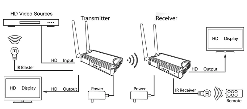 Este extensor inalámbrico transmite señales de audio y vídeo HDMI a través del protocolo de transmisión inalámbrica incorporado.