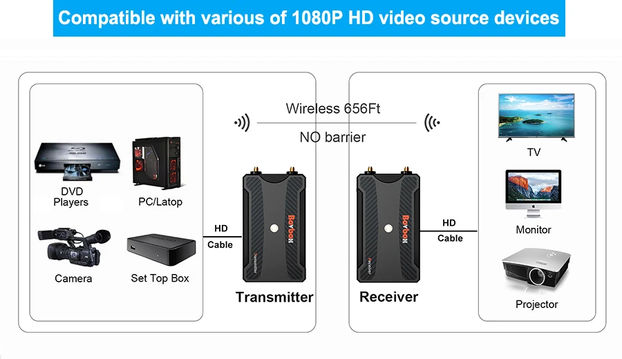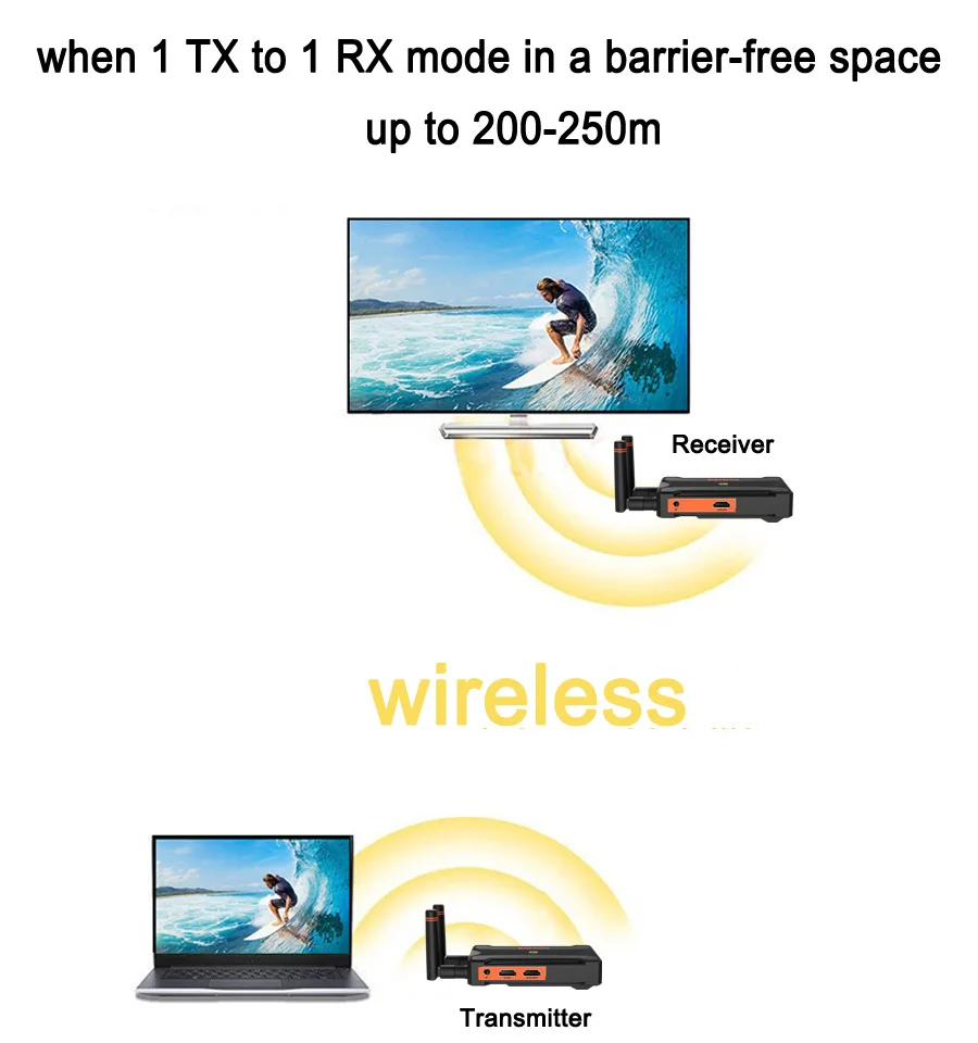 Comprar Extensor HDMI inalámbrico de 200m y 250m, transmisor de vídeo, receptor, divisor de pantalla para YoloBox Pro, transmisión en vivo, cámara PS4, PC a TV