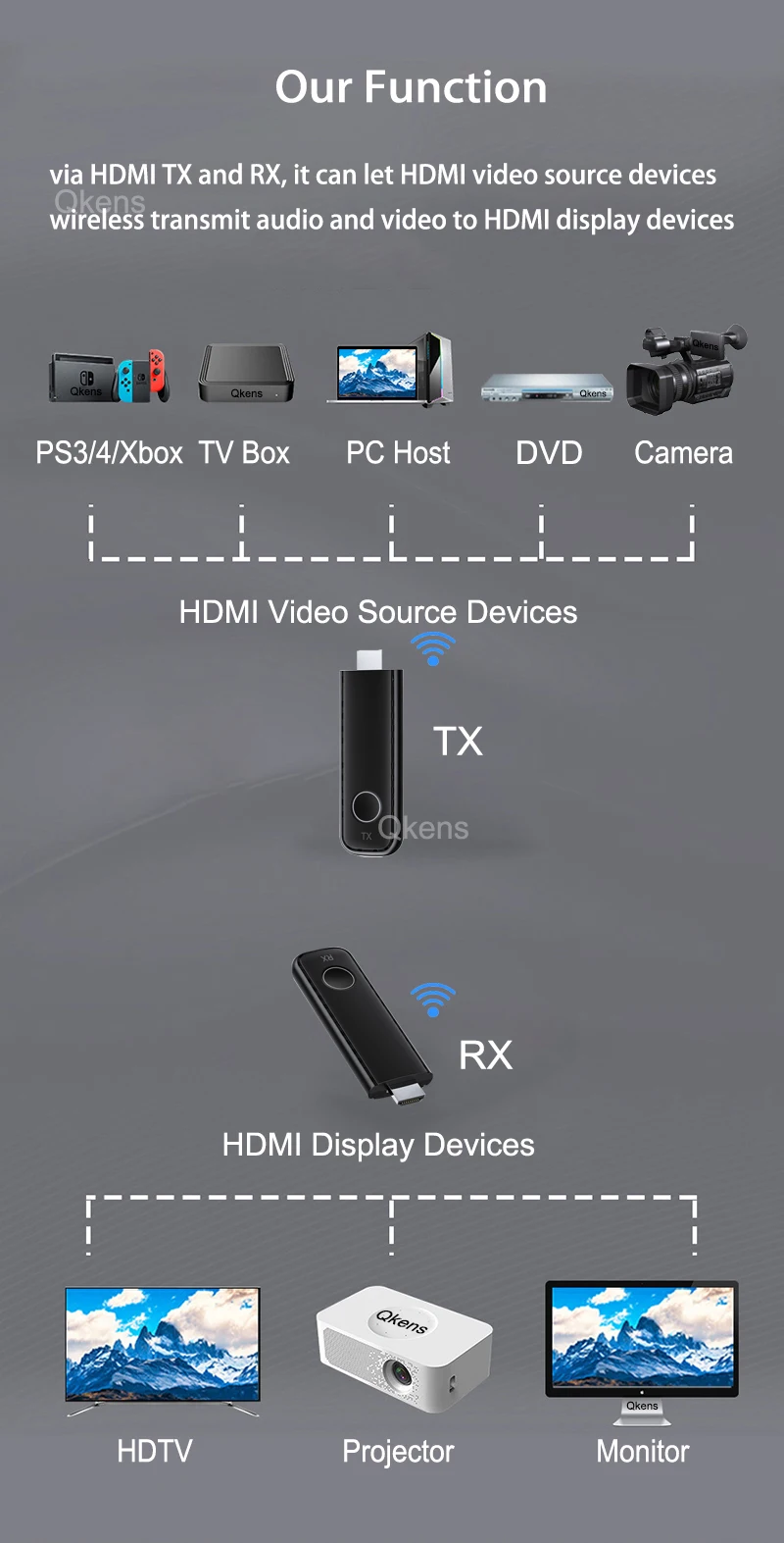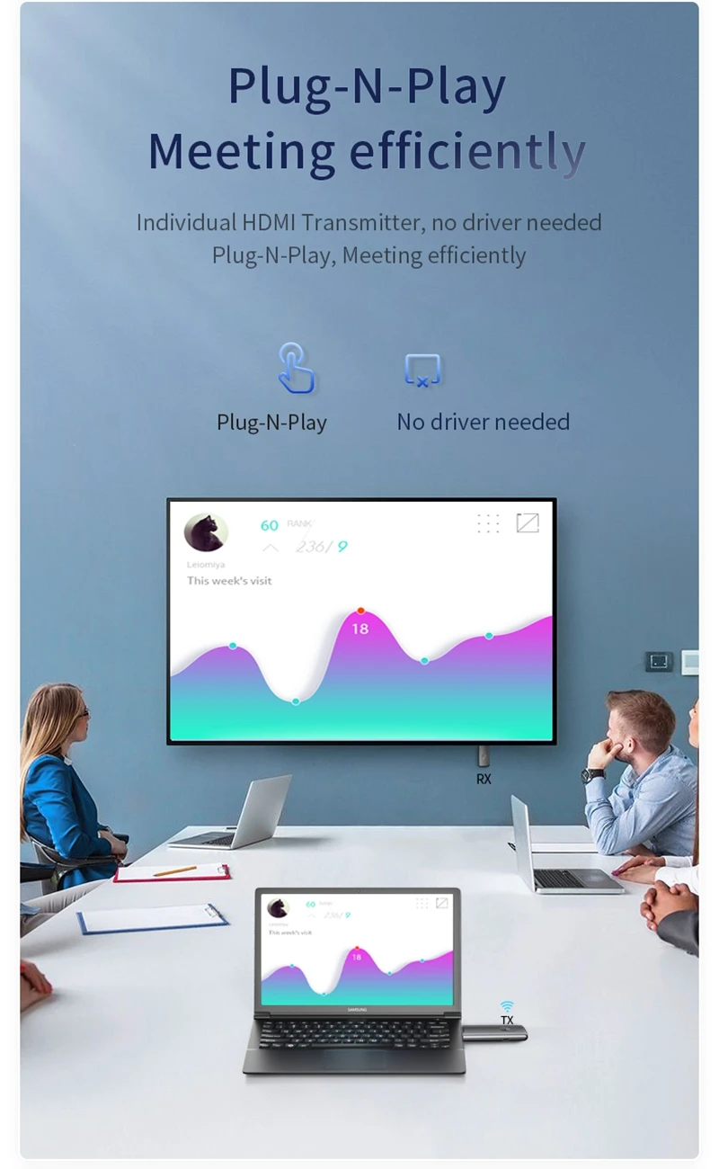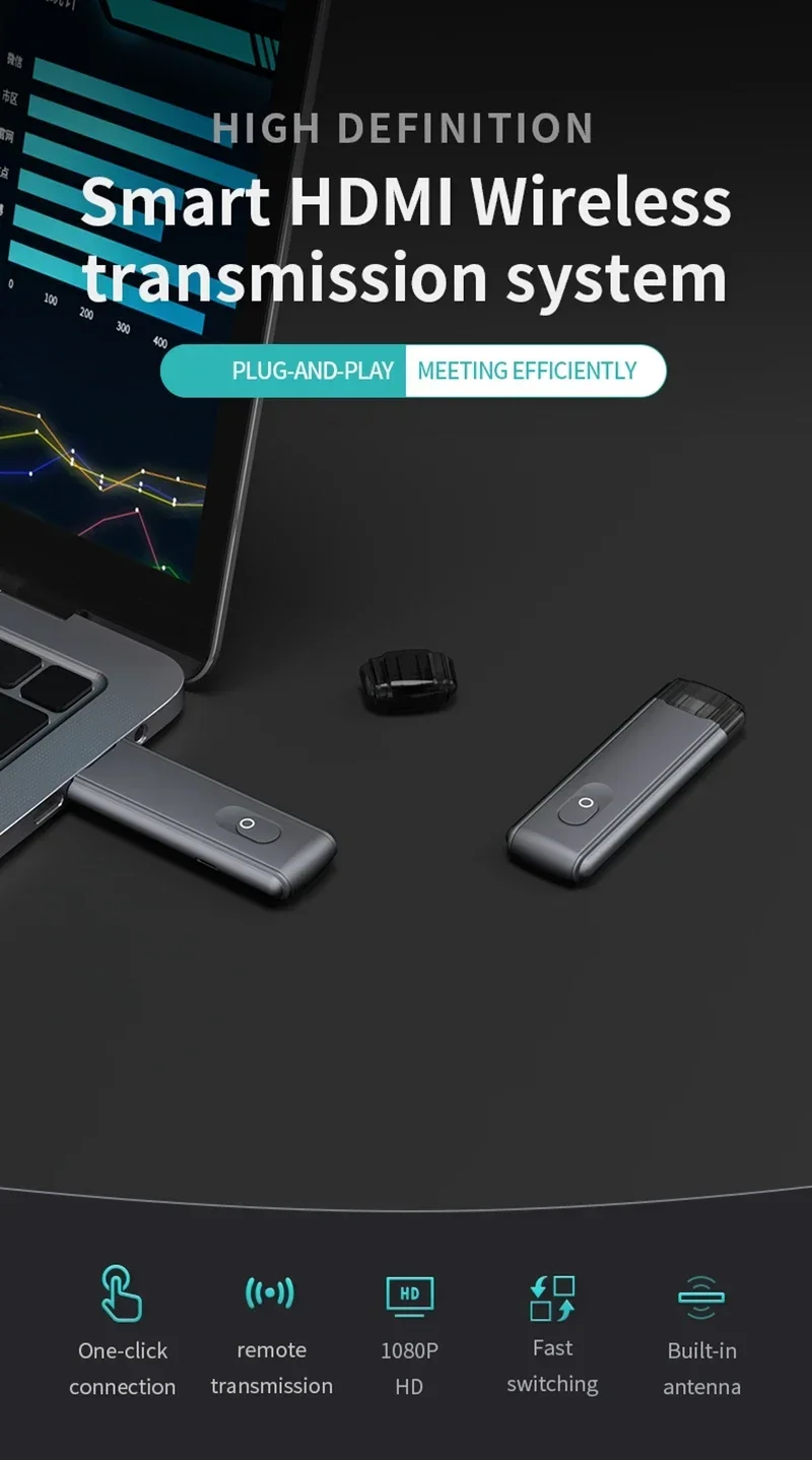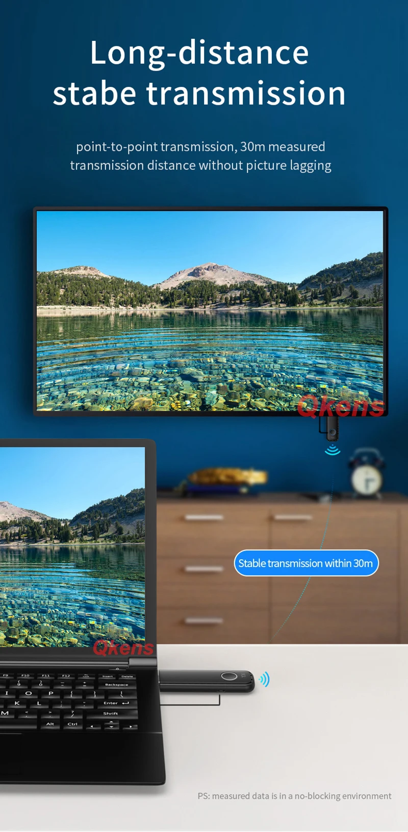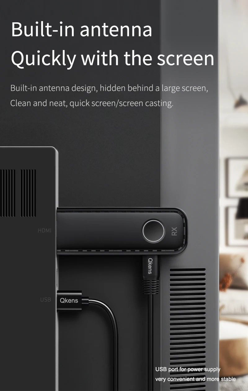 1.Transmisión de vídeo y audio HDMI a través del protocolo de transmisión inalámbrica incorporado,