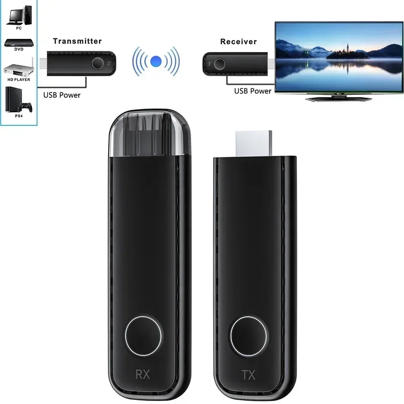 Comprar Extensor HDMI inalámbrico de 30m, transmisor y receptor de vídeo, adaptador de pantalla Dongle de TV, compartir para DVD, portátil, PC, proyector de TV