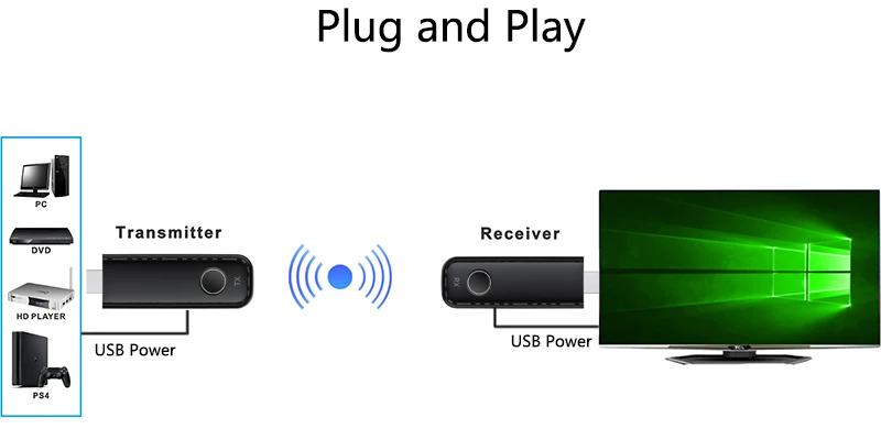 Este protocolo de transmisión inalámbrica incorporado del extensor HDMI puede transmitir de forma inalámbrica señales de audio y vídeo HD,