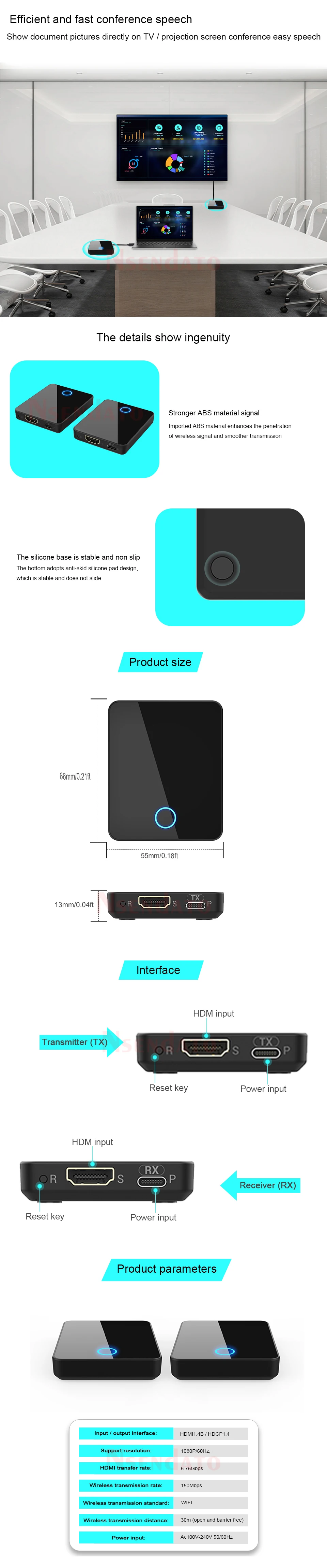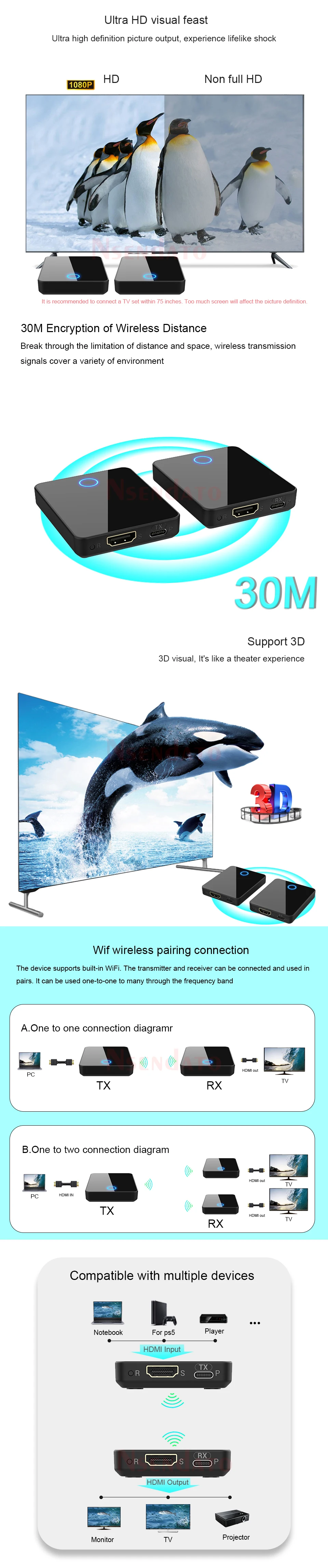 Comprar Extensor HDMI inalámbrico de 30M y 1080p, transmisor y receptor de vídeo inalámbrico Compatible con HDMI para PC, cámara, TV y portátil