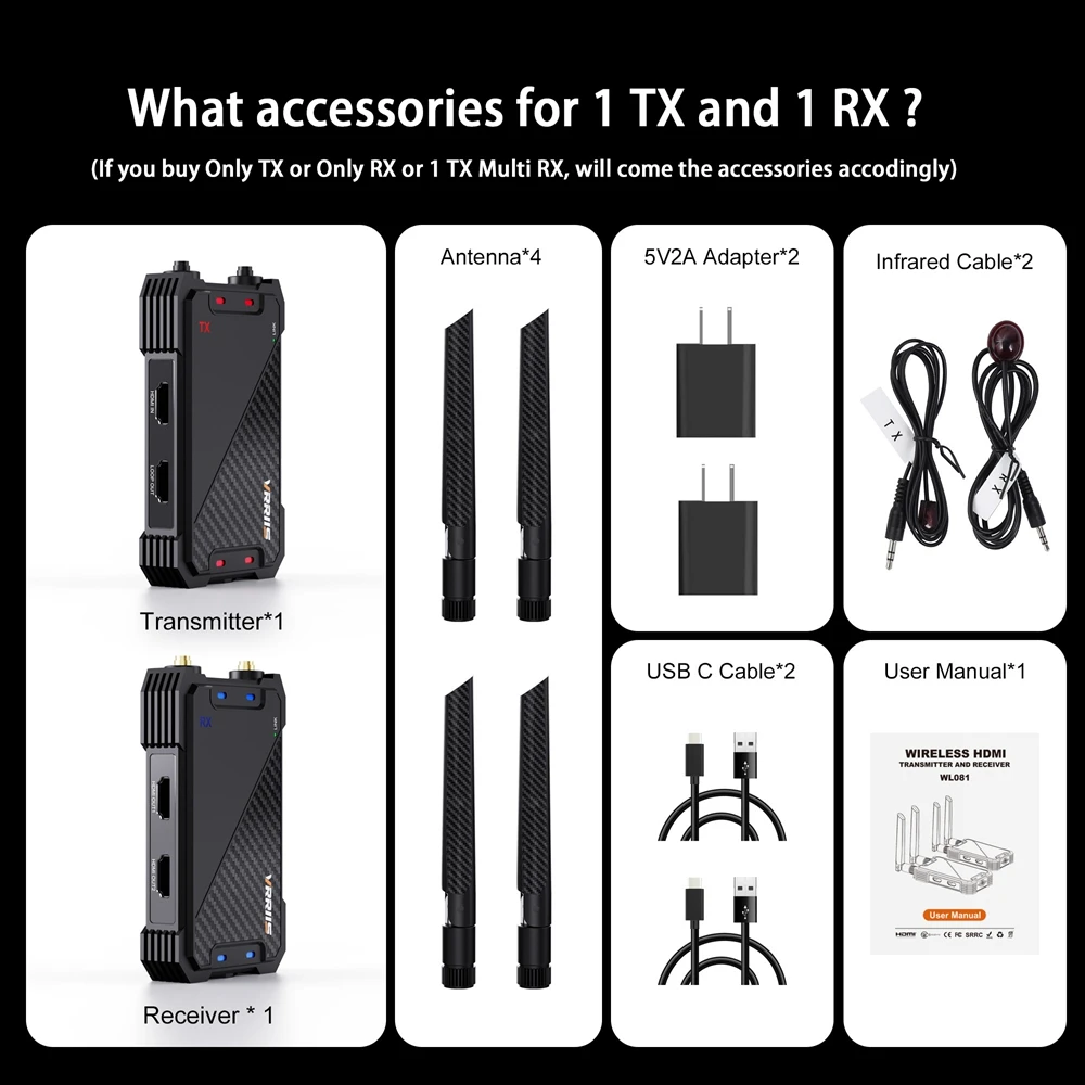 etc.El lado del transmisor admite salida local HDMI de 1 canal, el lado del receptor admite 2 canales