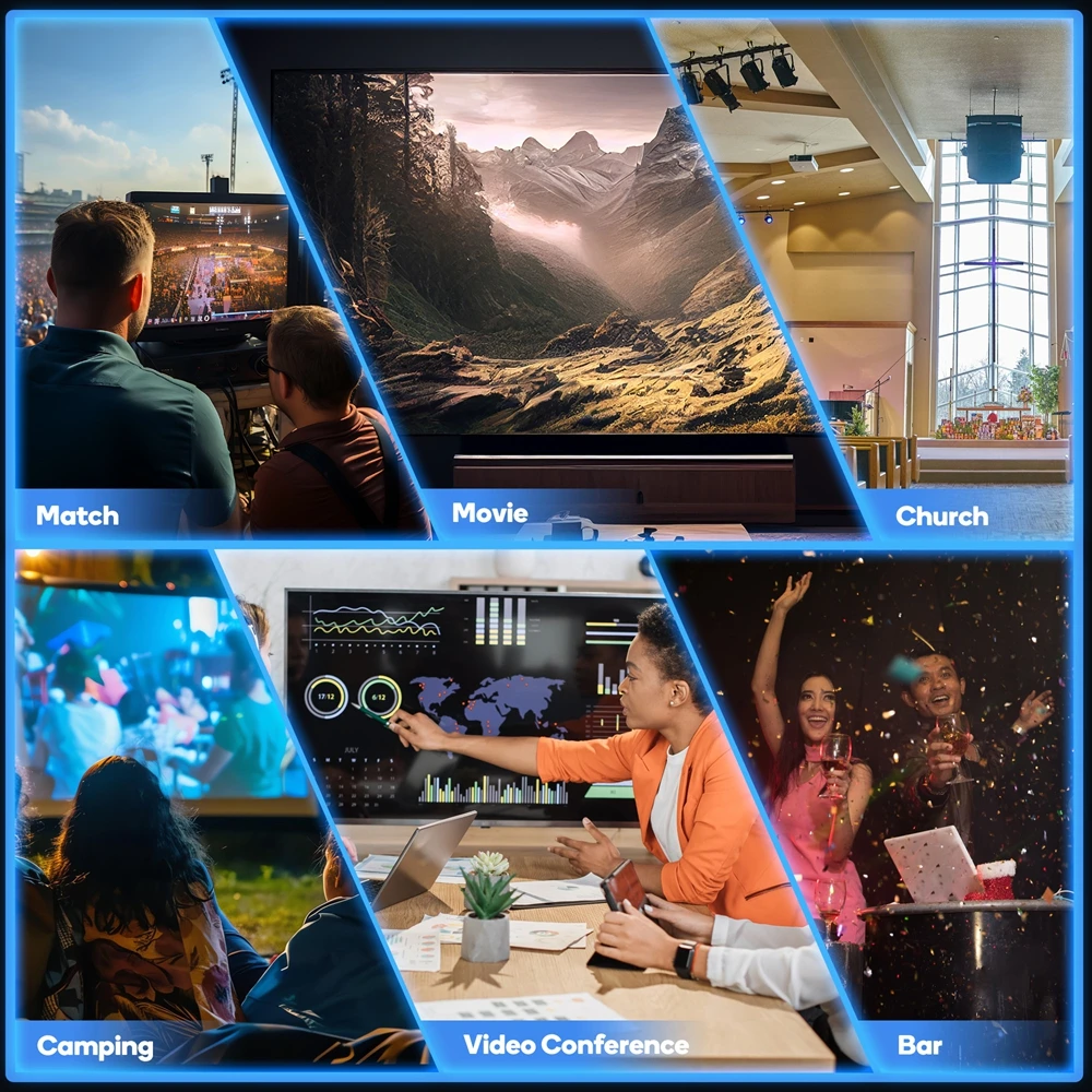 para presentaciones de conferencias, enseñanza multimedia, mirar televisión, jugar, etc.