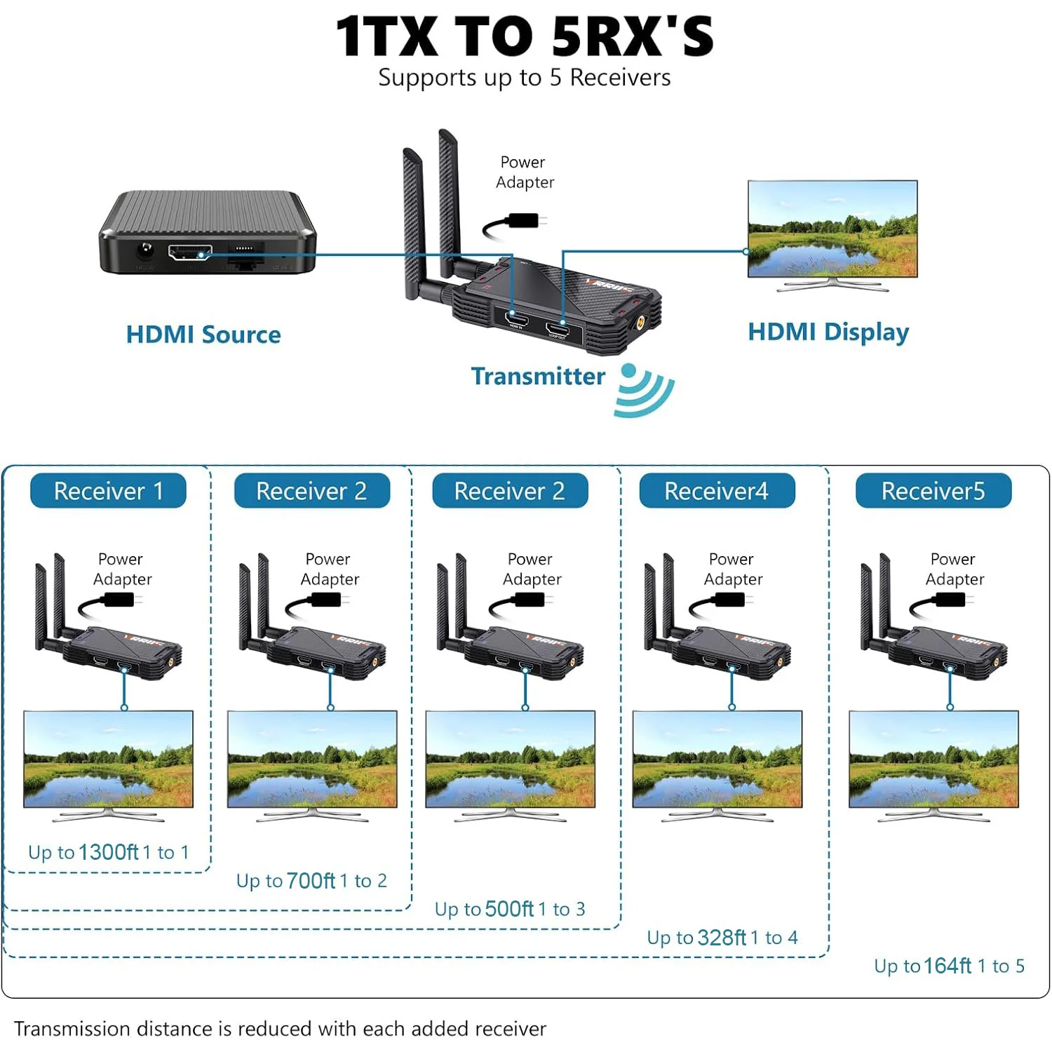 etc.El lado del transmisor admite salida local HDMI de 1 canal, el lado del receptor admite 2 canales