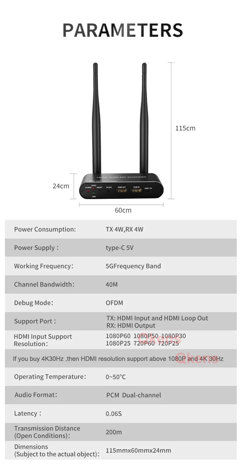 Comprar Extensor HDMI inalámbrico 4K de 200m, transmisor y receptor de vídeo para DVD STB, portátil, PC, cámara a TV, proyector, Monitor, 1080p