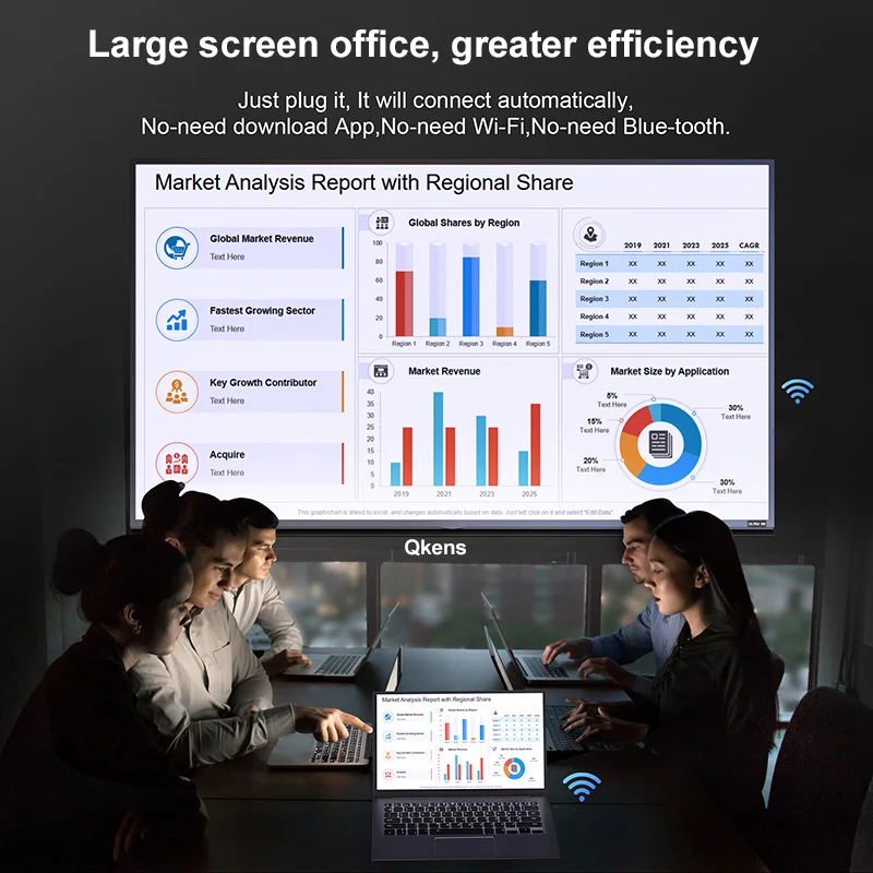 Le permite disfrutar fácilmente de una pantalla grande de forma inalámbrica, más eficiente, impactante, relajarse y es bueno para los ojos.