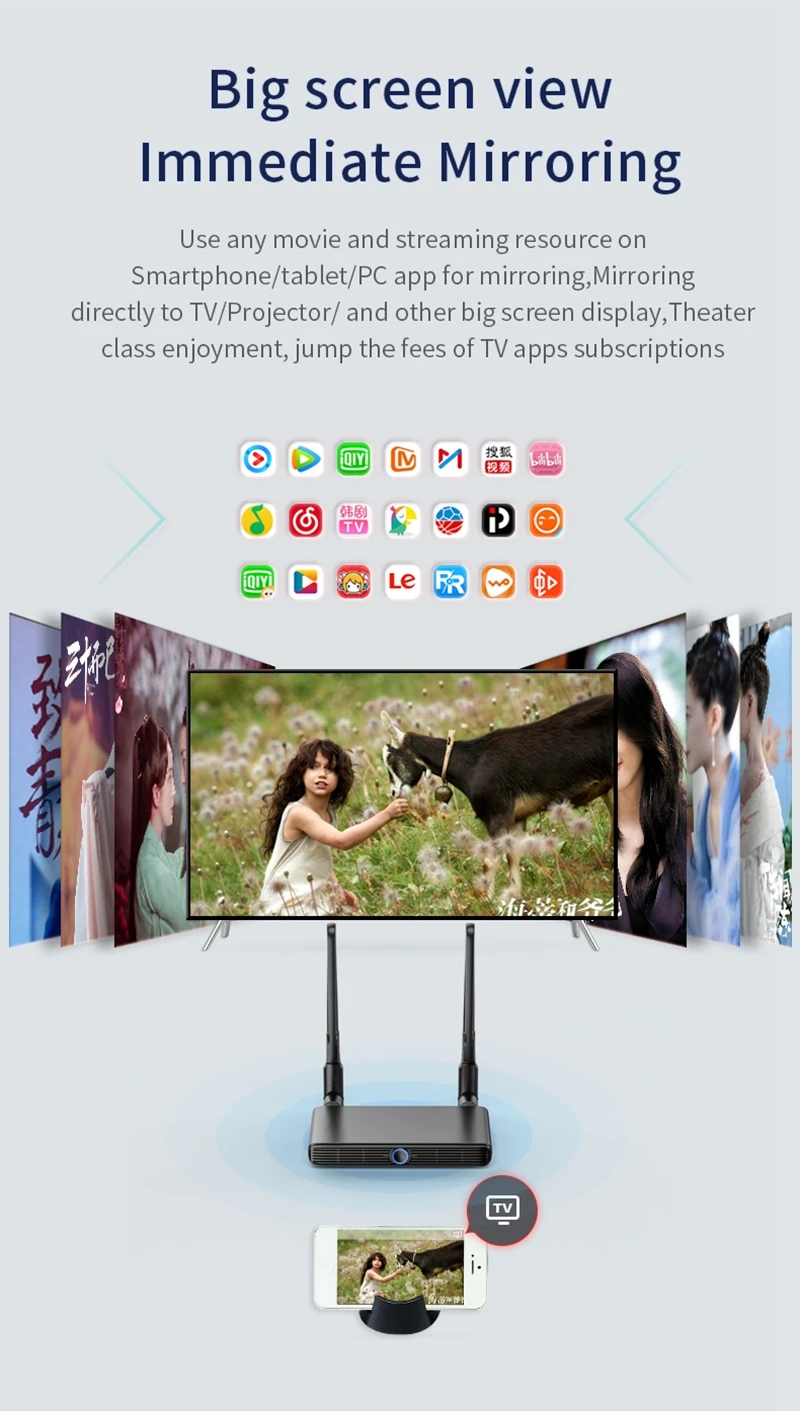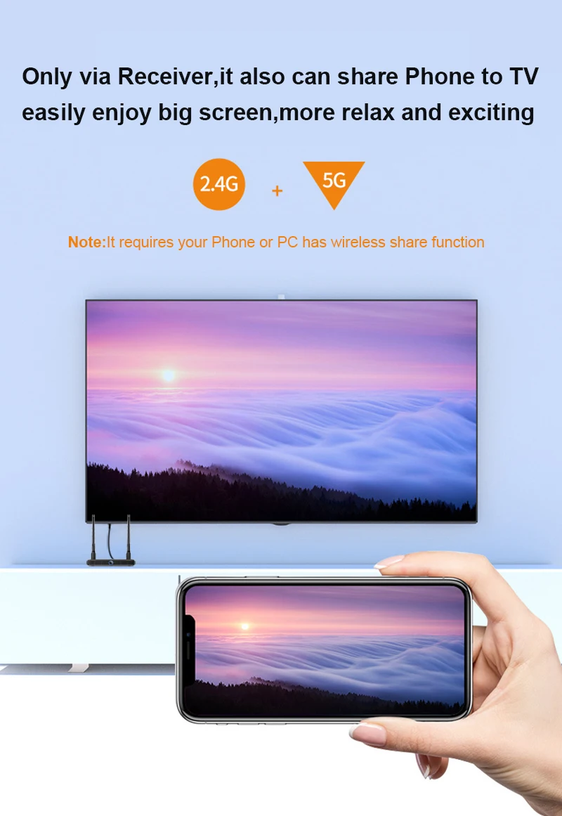 It also can mirror your mobile phone or laptop PC to TV via the Receiver only as long as your device has