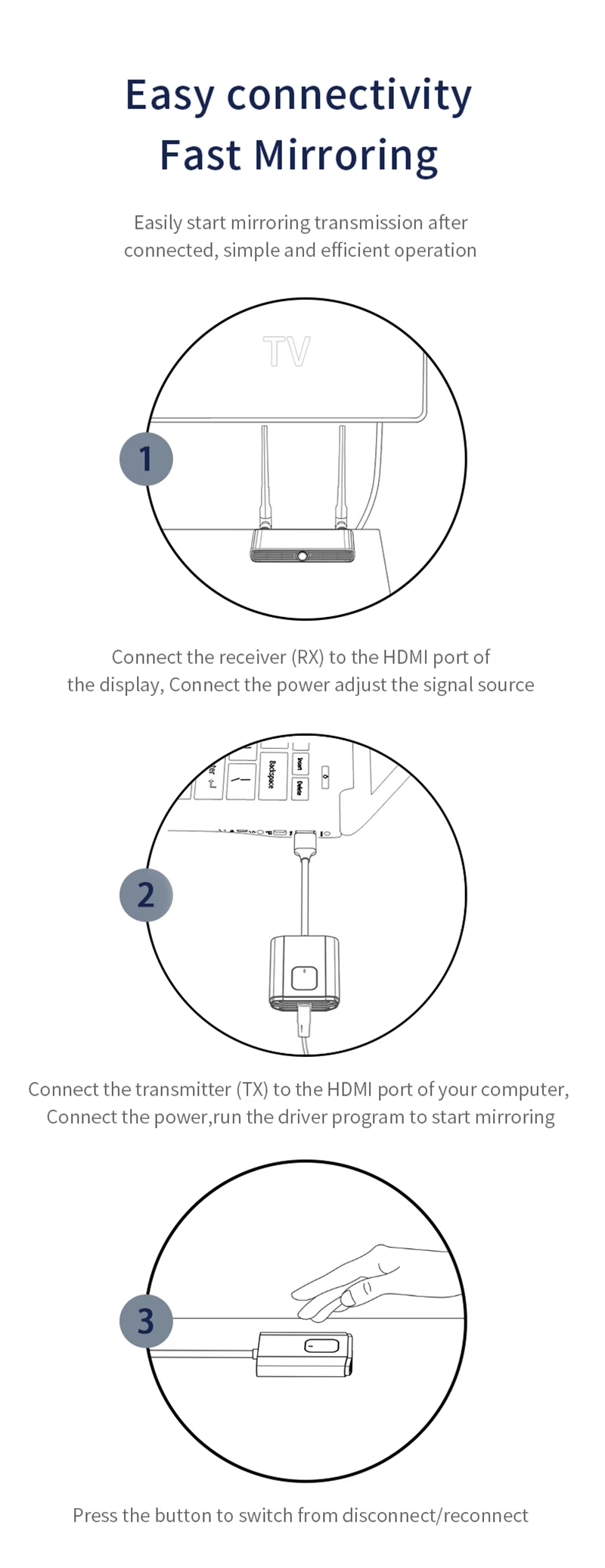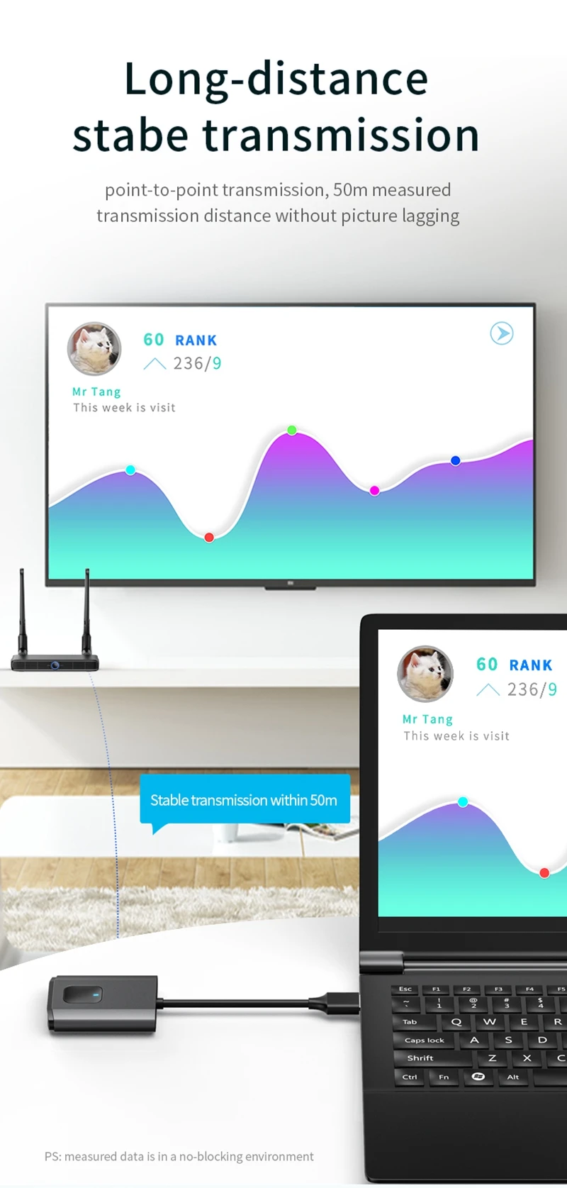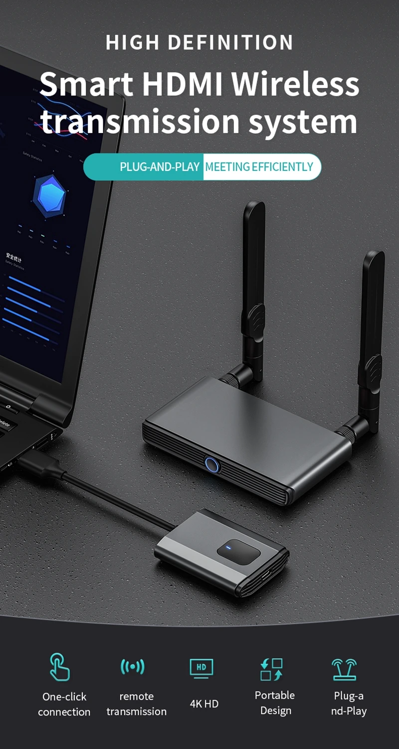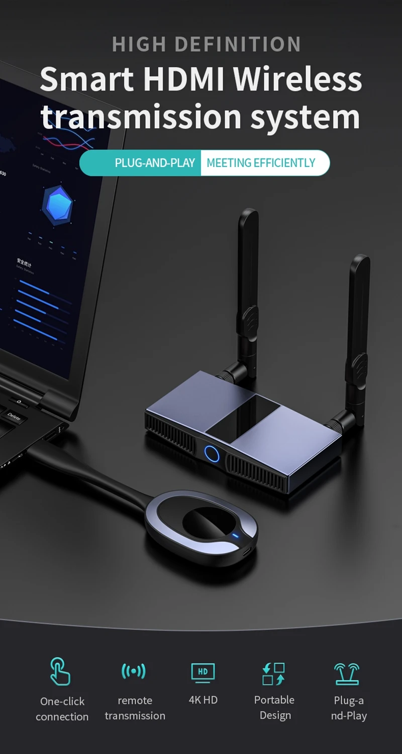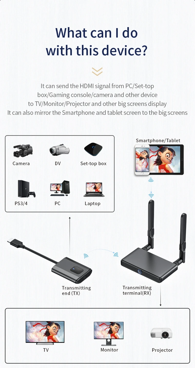 HDMI display devices) is wireless transmission,between the TX and RX without HDMI cables,save the cost