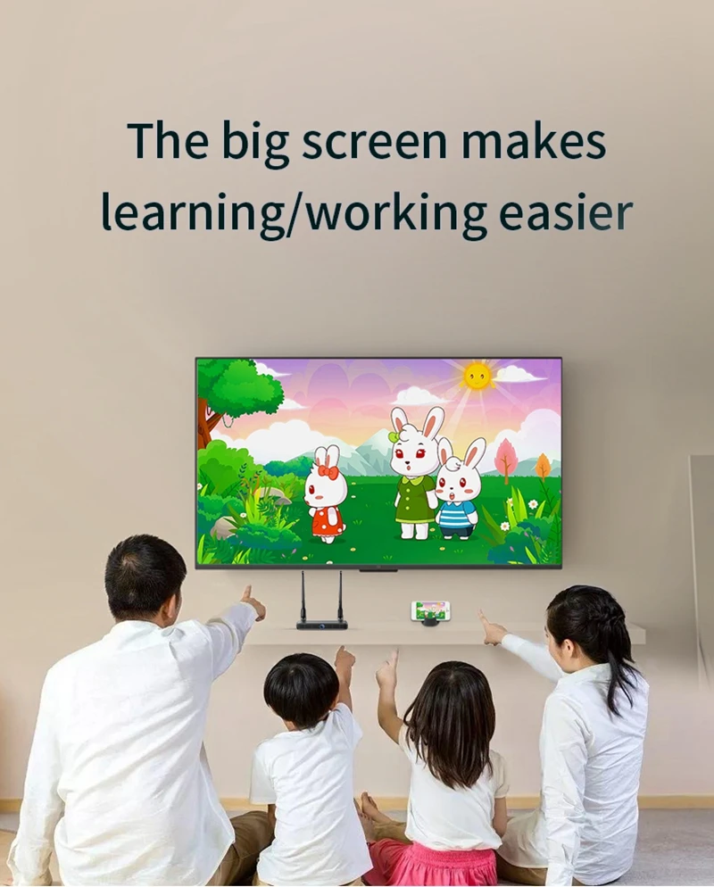 With this product, you can easily enjoy big screen display, between TX (connect to TV Box/ DVD/ Camera/