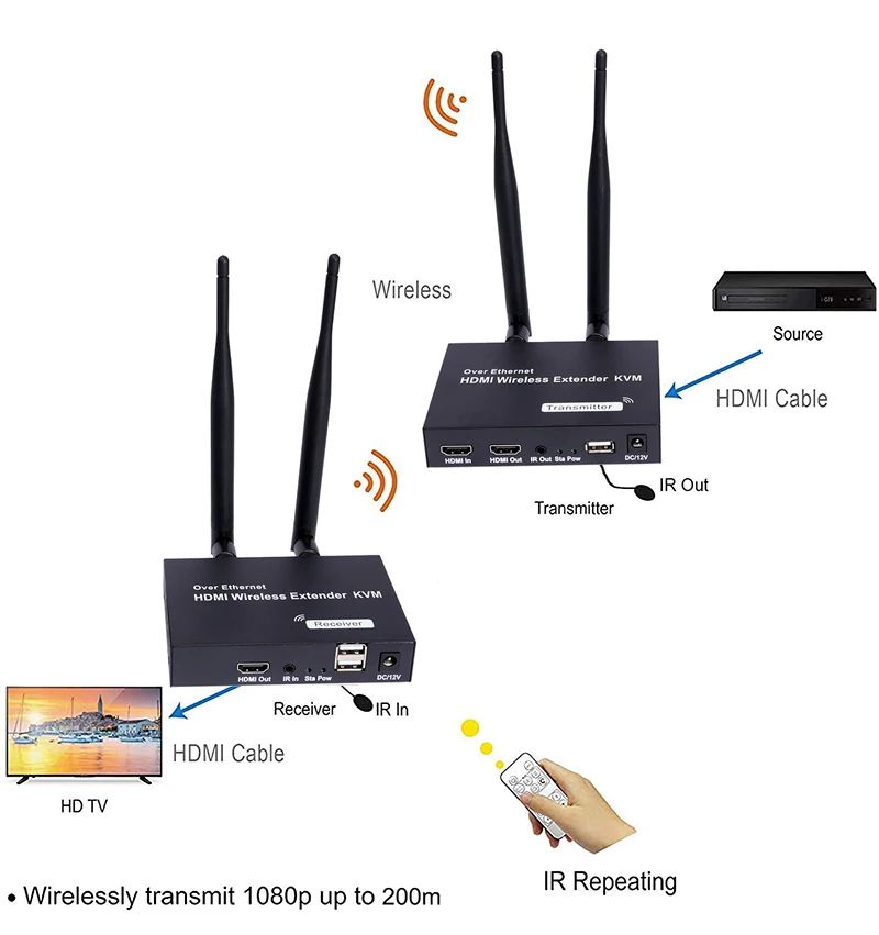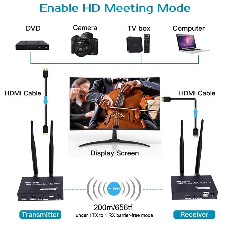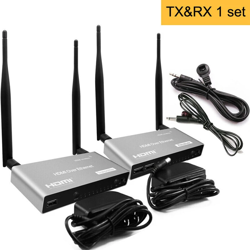 Comprar Extensor HDMI inalámbrico KVM USB, transmisor y receptor de Audio y vídeo, pantalla para cámara, PS4, portátil, PC, proyector de TV, 1080P, 200M