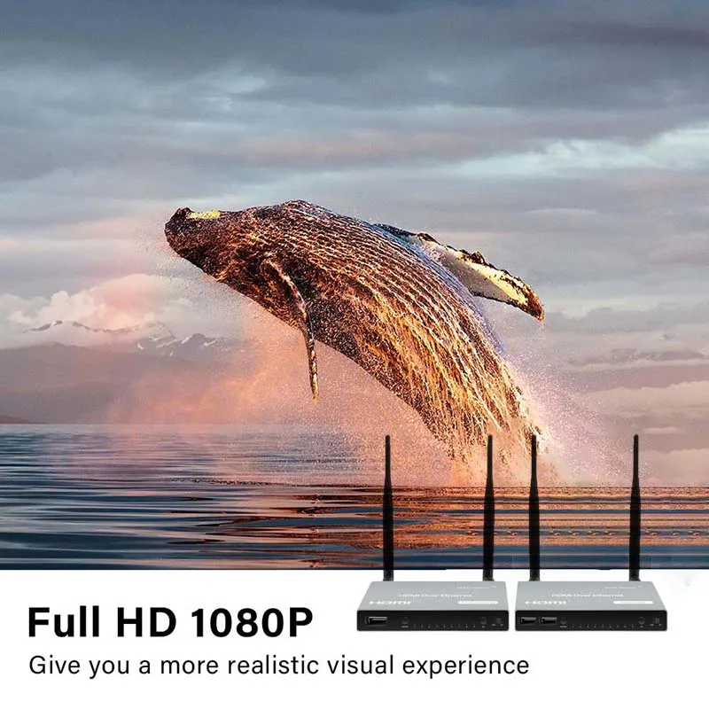 Y fuerte capacidad anti-interferencia. TX admite bucle de salida local HDMI; también admite control remoto por infrarrojos para