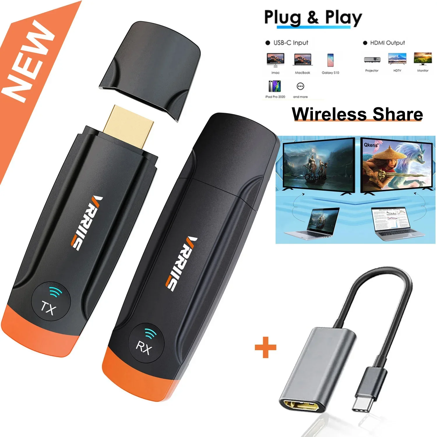 Comprar Extensor HDMI inalámbrico tipo C de 60m, transmisor de vídeo, receptor, adaptador de pantalla para Iphone 15 16 Macbook, portátil, PC a proyector de TV
