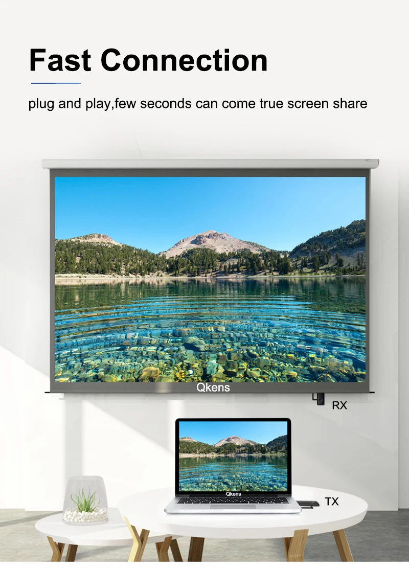 Este extensor Qkens HDMI incorporado protocolo de transmisión inalámbrica, puede transmitir de forma inalámbrica señal de audio y video HD,