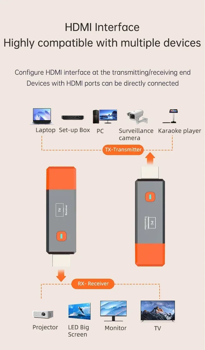 Comprar Extensor HDMI inalámbrico para TV Stick, adaptador de transmisor y receptor de vídeo, interruptor para ordenador portátil, PC a TV, Monitor y proyector, 1080P, 4k, 50M