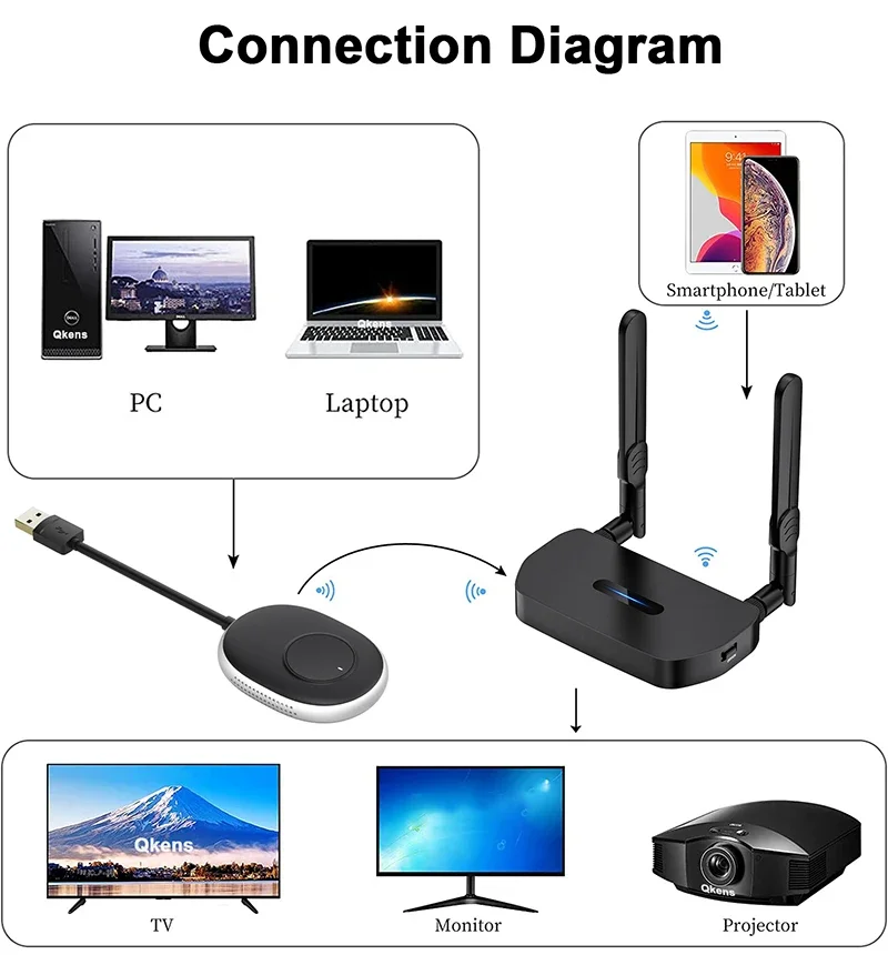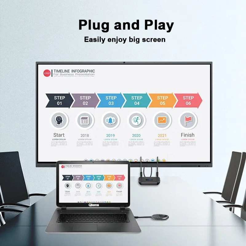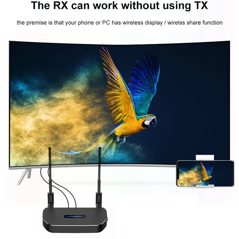 Con este producto, puede disfrutar fácilmente de una pantalla grande, entre TX y RX hay transmisión inalámbrica sin