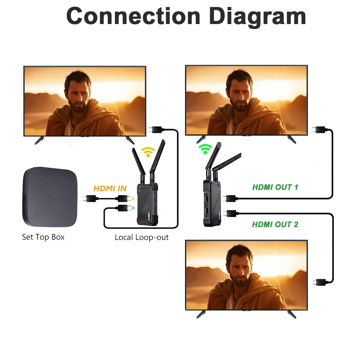etc.El lado del transmisor admite salida local HDMI de 1 canal, el lado del receptor admite 2 canales
