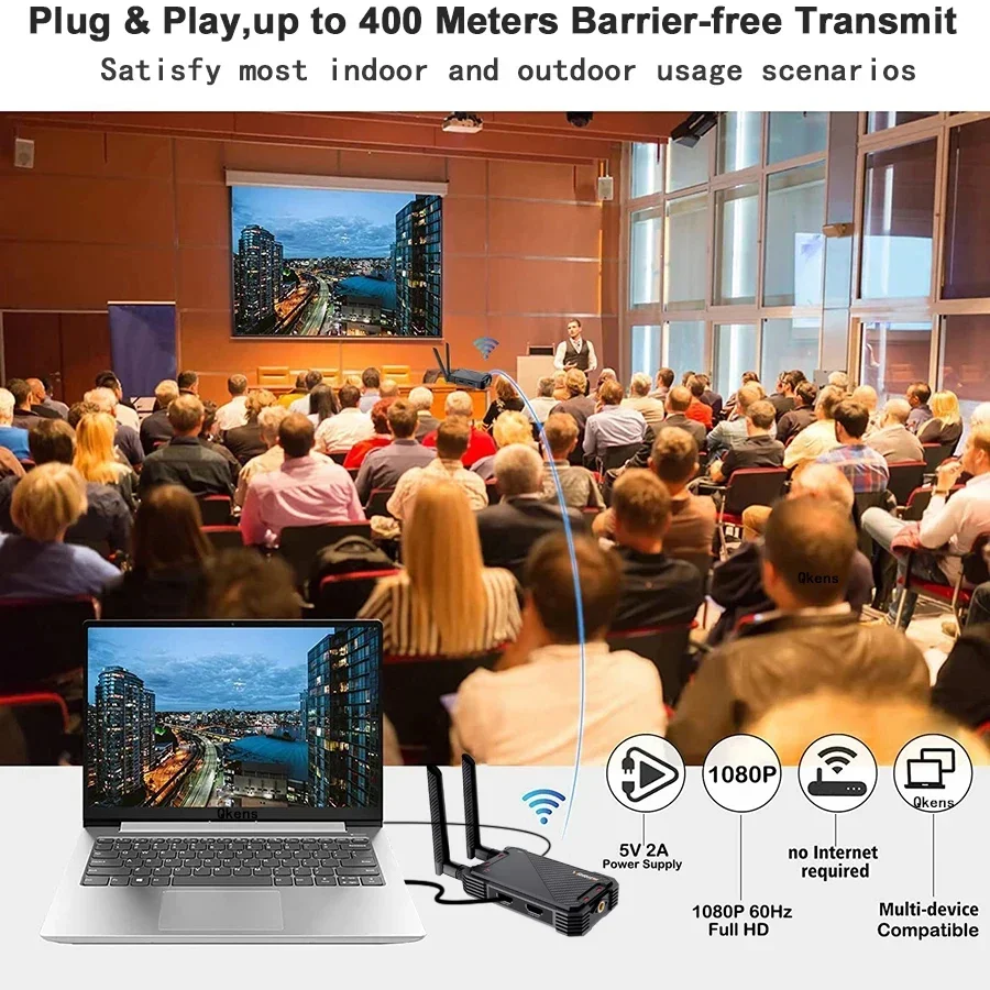 Comprar Extensor HDMI inalámbrico Wifi de 400m, adaptador de pantalla de transmisión de Audio y vídeo, 1 envío 2, 3, 4, recepción para cámara, portátil, PC, proyector de TV