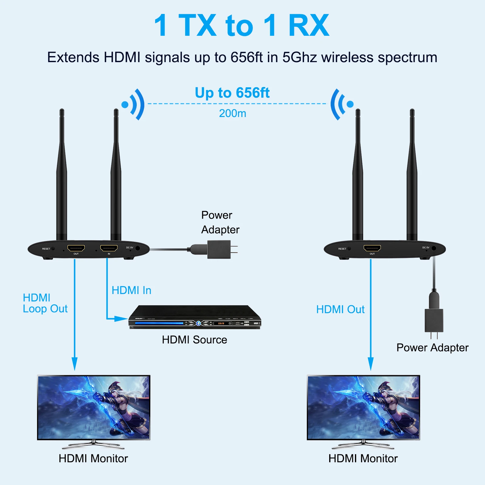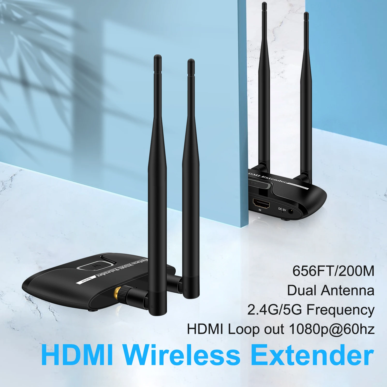 Extensor inalámbrico Wifi HDMI 200M Antena dual Receptor transmisor de video con salida de bucle HDMI para cámara PS4 PC a TV