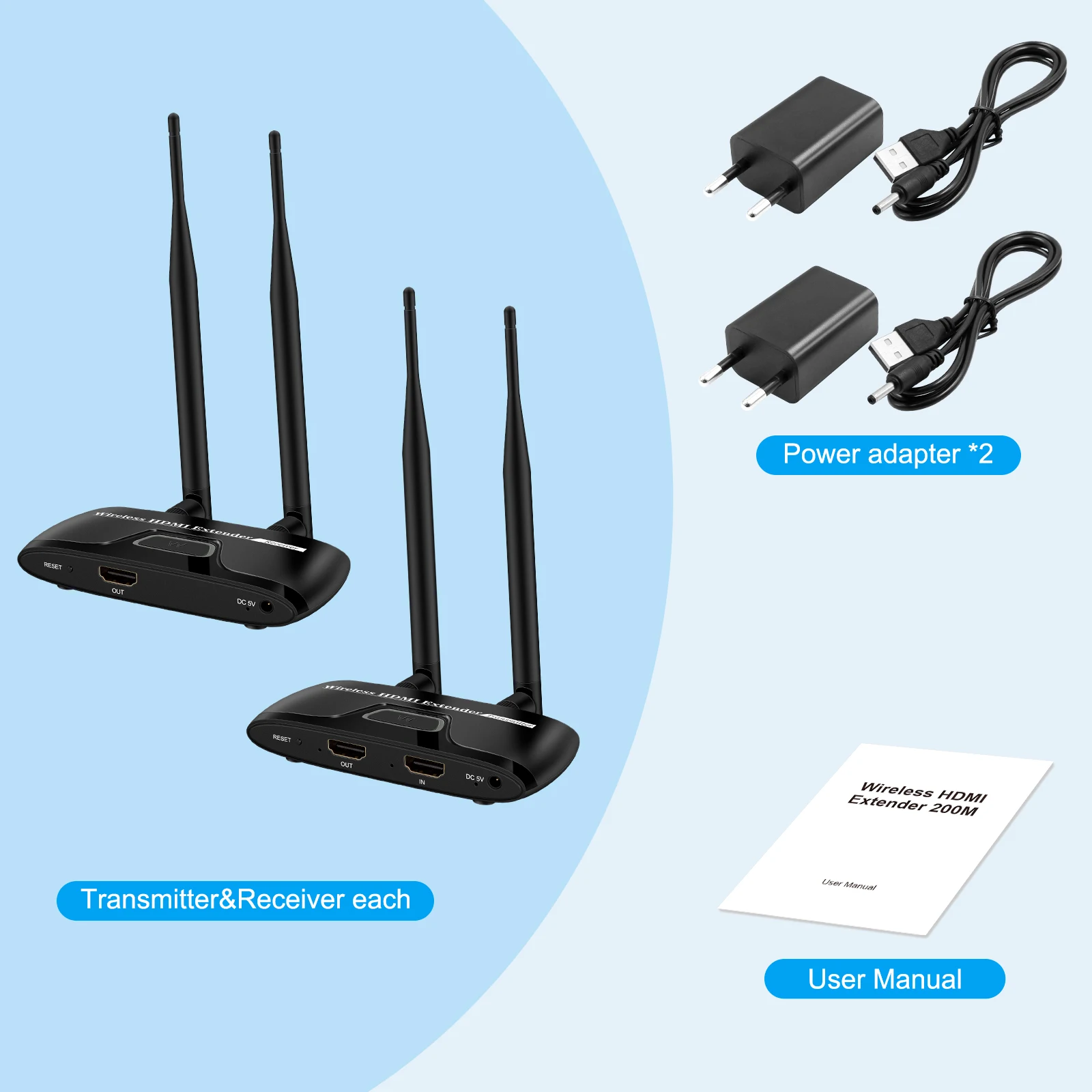 Extensor inalámbrico Wifi HDMI 200M Antena dual Receptor transmisor de video con salida de bucle HDMI para cámara PS4 PC a TV
