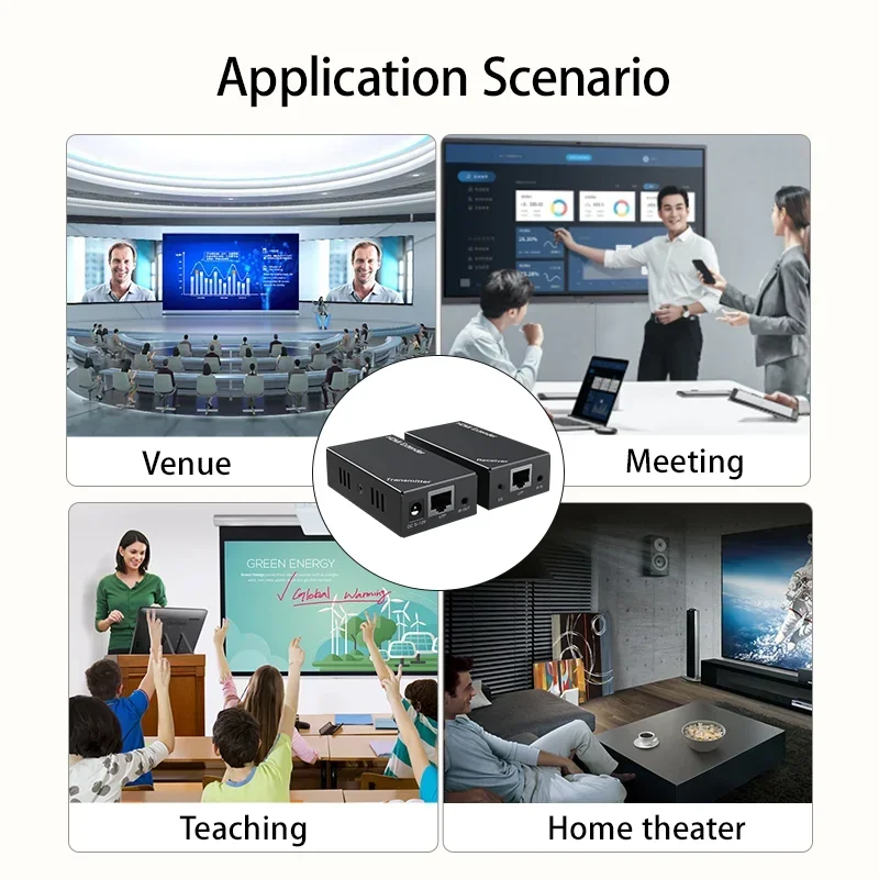 -- La fuente de vídeo de alta definición transmite señales de vídeo de alta definición a través de cables Ethernet CAT5e/Cat6, con una distancia de transmisión de hasta 150 metros.