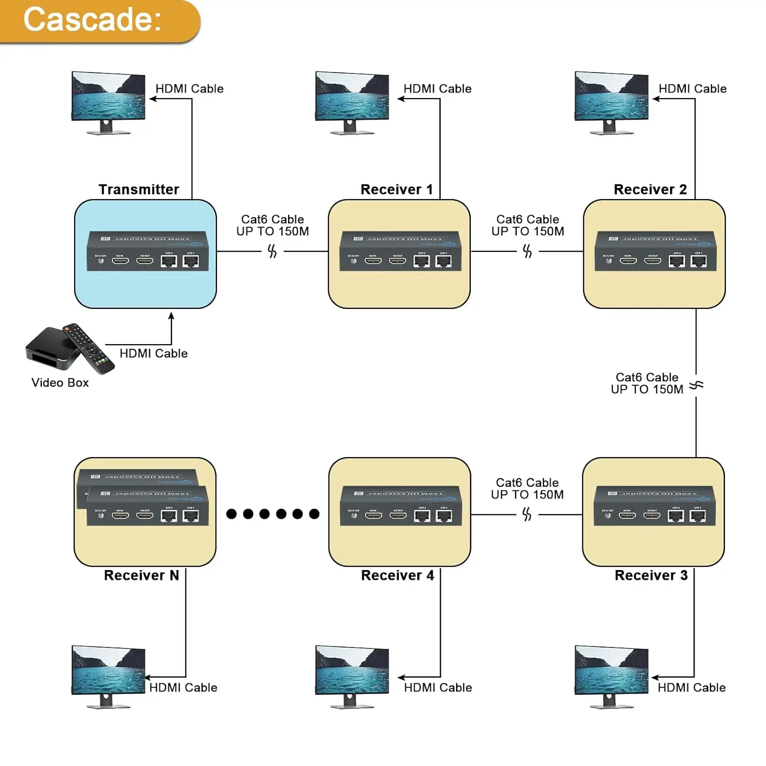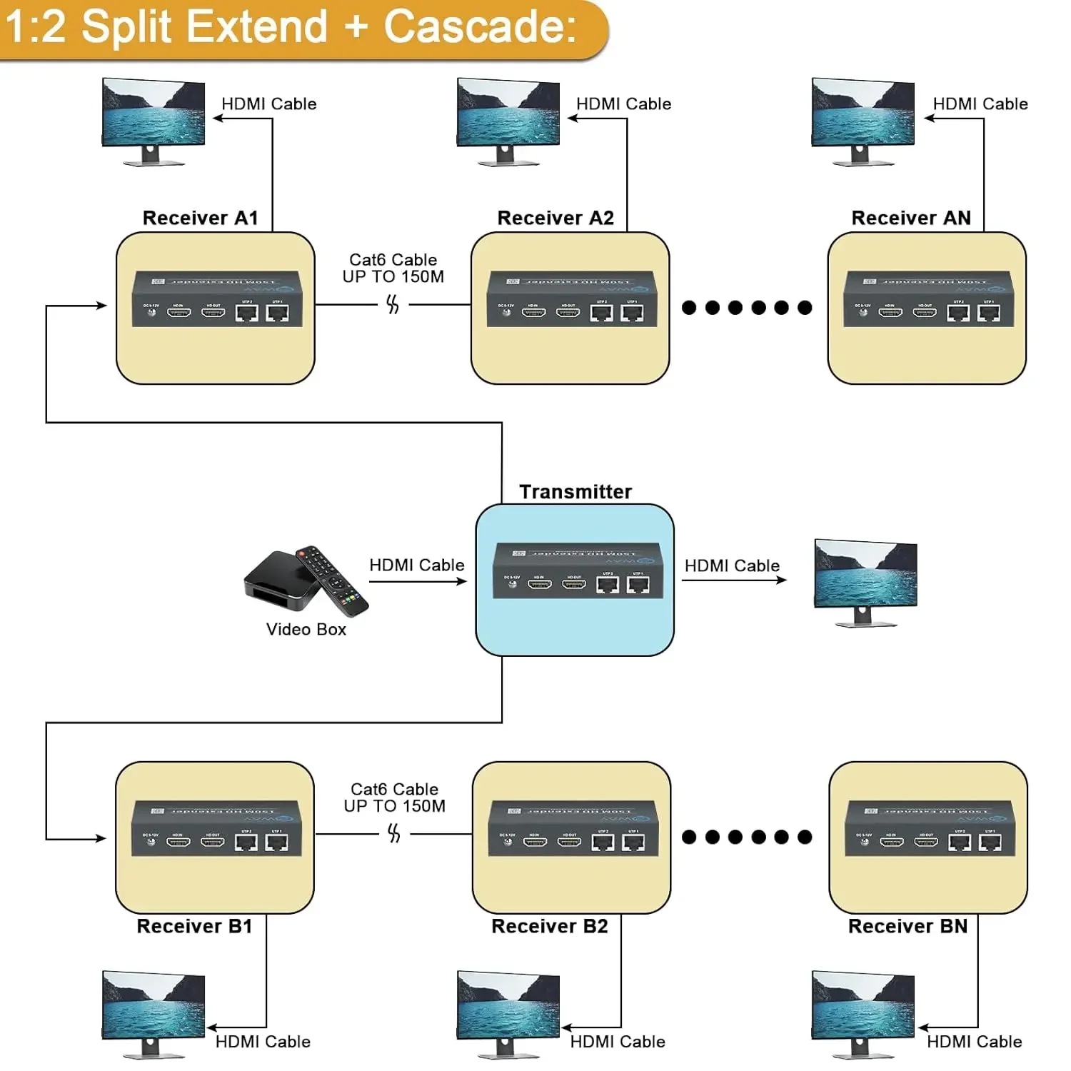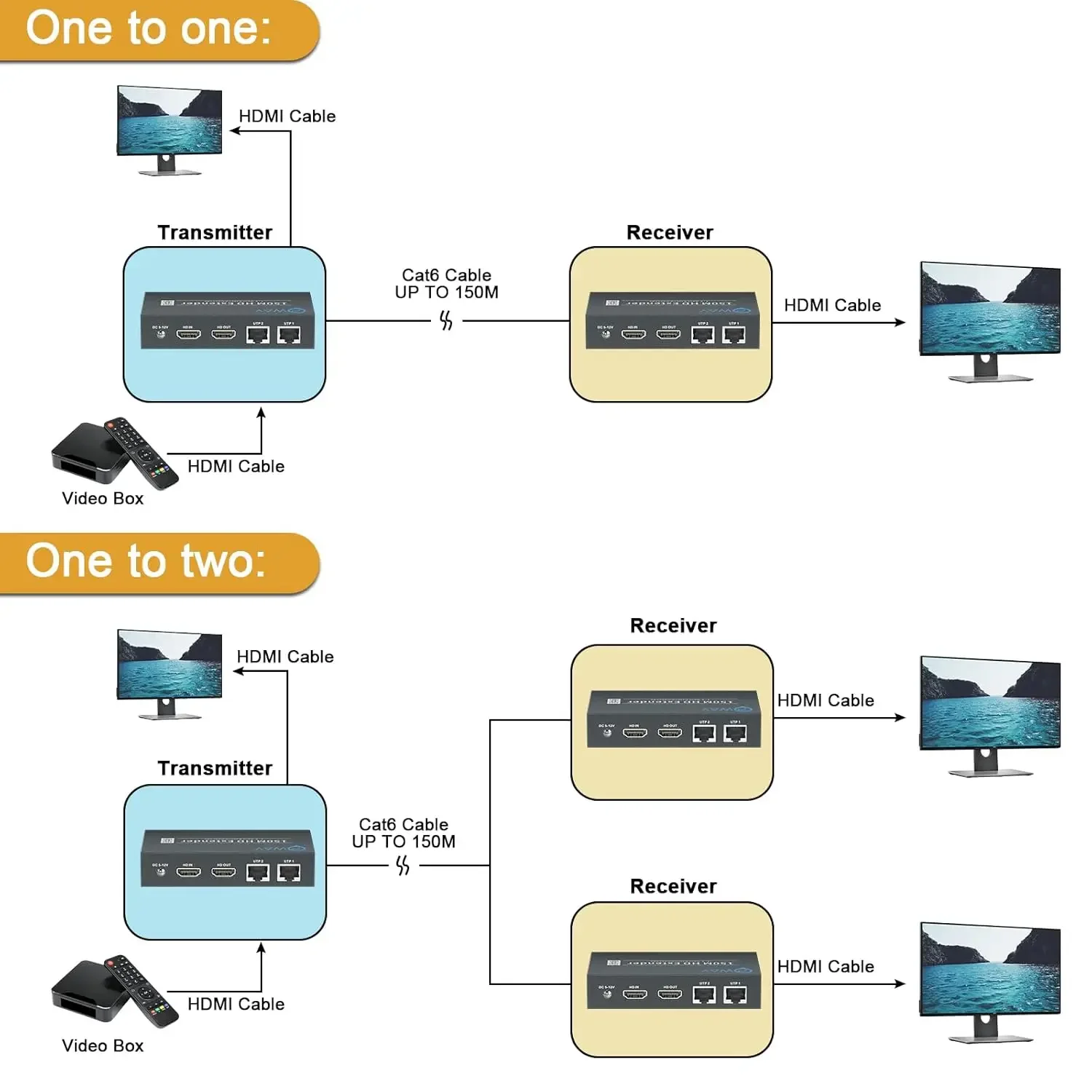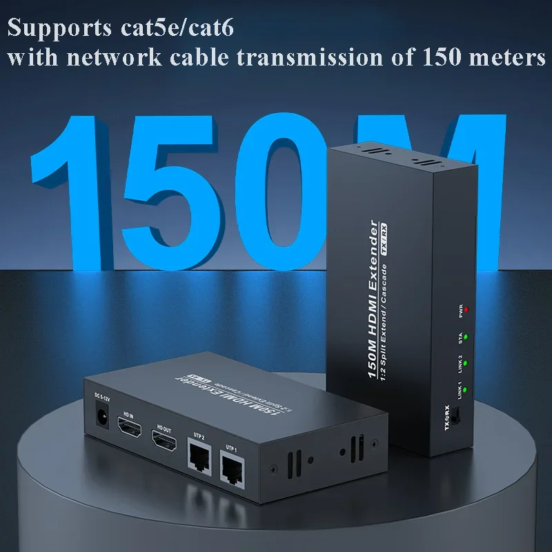 Comprar Extensor HDMI integrado de 150M con transmisión Cat5e/cat6, compatible con transmisión de larga distancia para reuniones y monitoreo