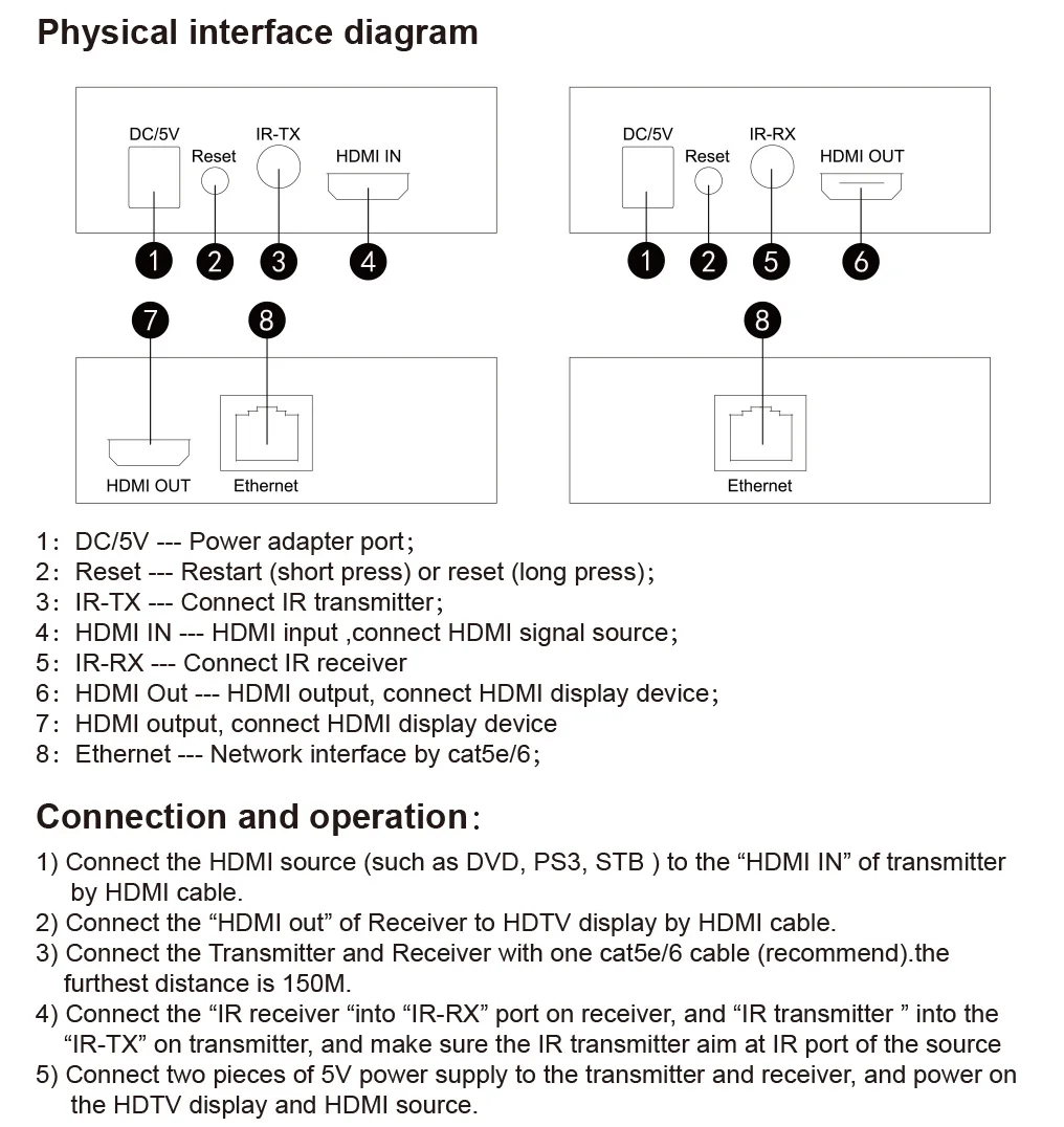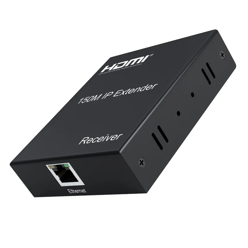 El extensor HDMI IP de 150M se basa en el estándar TCP/IP. Transmite su pantalla HD con la alta resolución hasta 150 metros de distancia de su DVD o fuente de ordenador mediante el uso de un cable CAT5e/6.