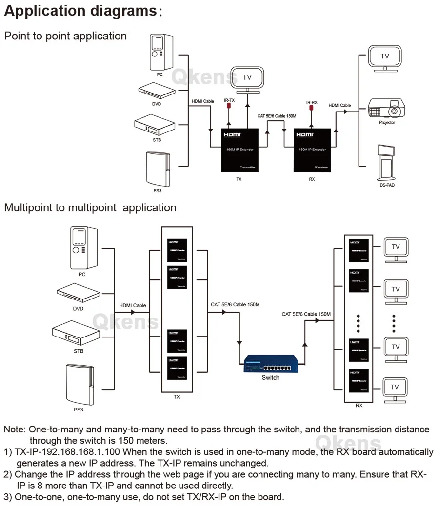 Este extensor IP HDMI de 150M se basa en el estándar TCP/IP. Transmite su pantalla HD con la alta resolución