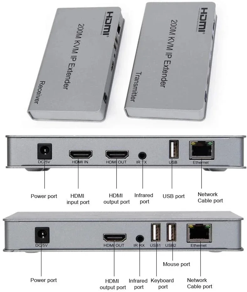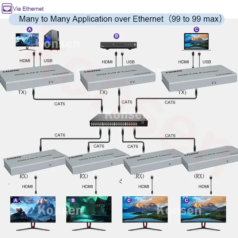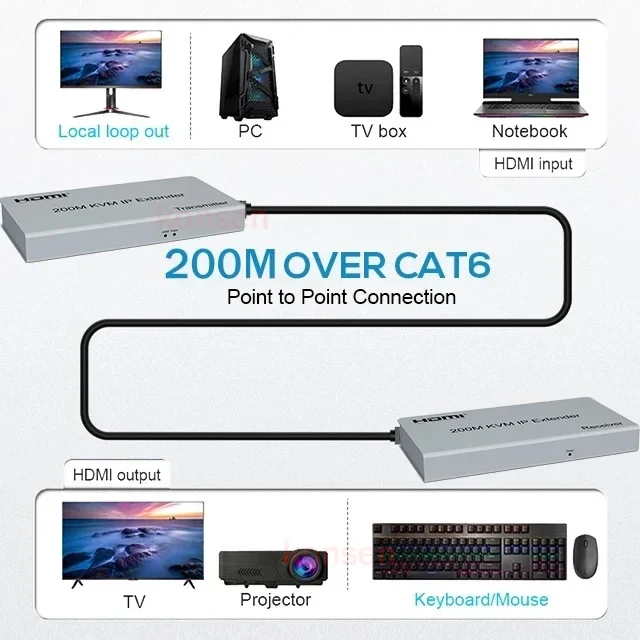 Comprar Extensor HDMI KVM de 200M sobre IP, RJ45, cat5e/6, 1080P, HDMI, USB, Ethernet, uno a muchos, interruptor Gigabit para PC, DVR, Loptop