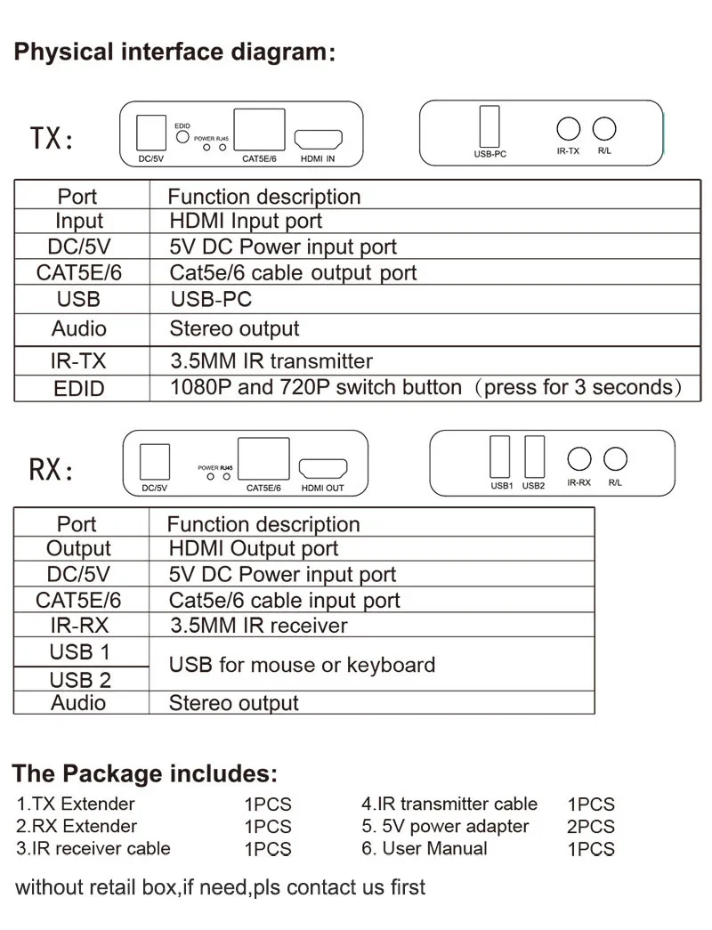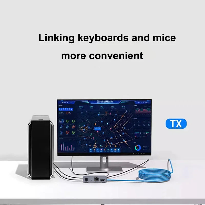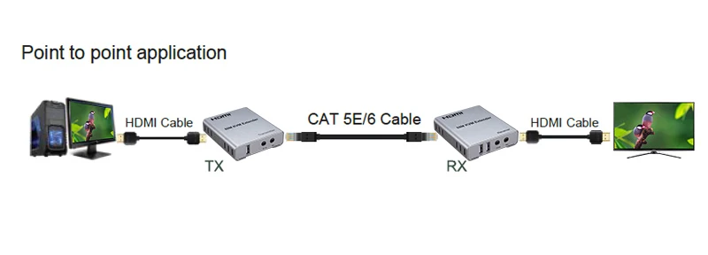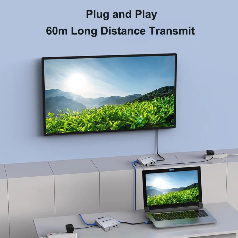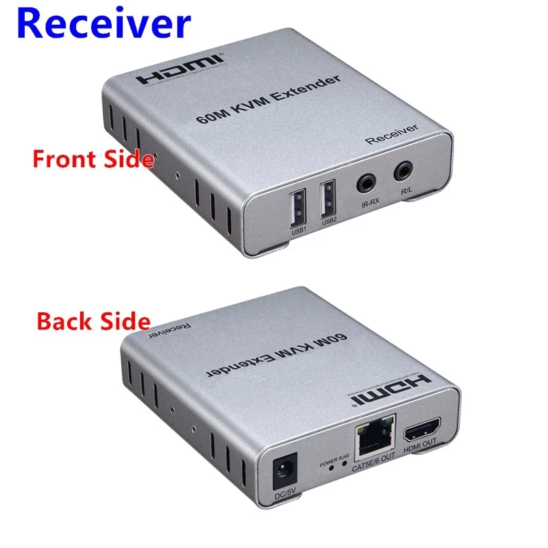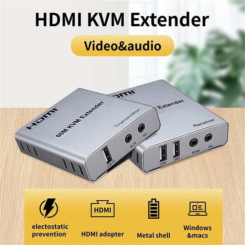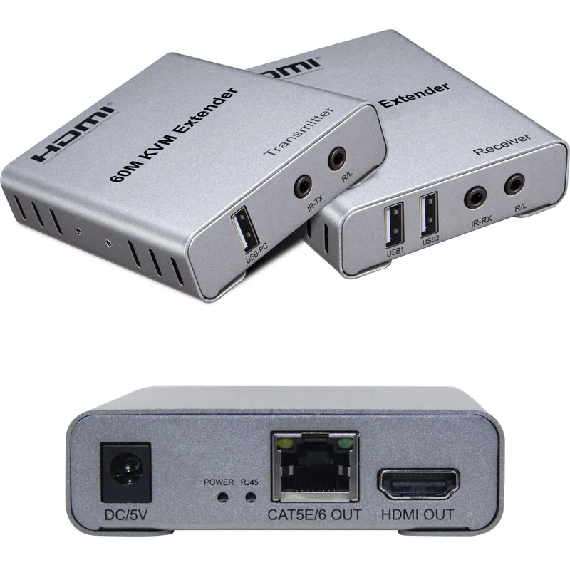 Extensor HDMI KVM de 60M, 1080P a través de CAT5e Cat6, Cable Ethernet, transmisor y receptor de Audio y vídeo, convertidor, teclado y ratón USB
