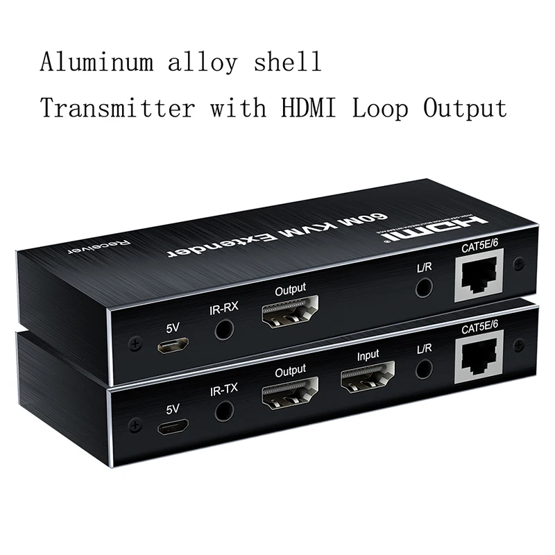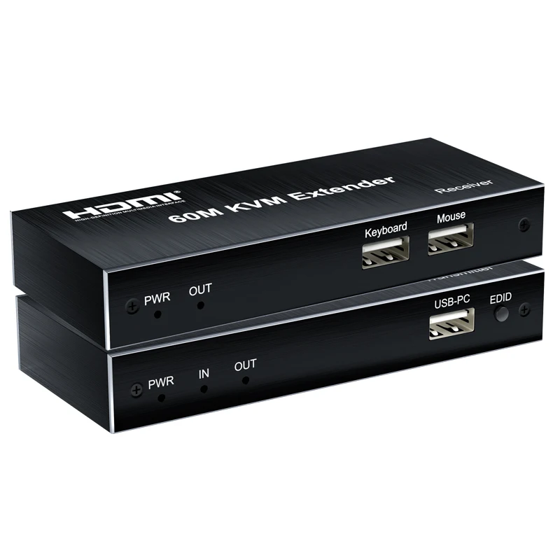 Extensor HDMI KVM de 60M sobre Cable Cat5e Cat6, extensor HDMI Ethernet, transmisor de vídeo, receptor, convertidor, compatible con teclado y ratón