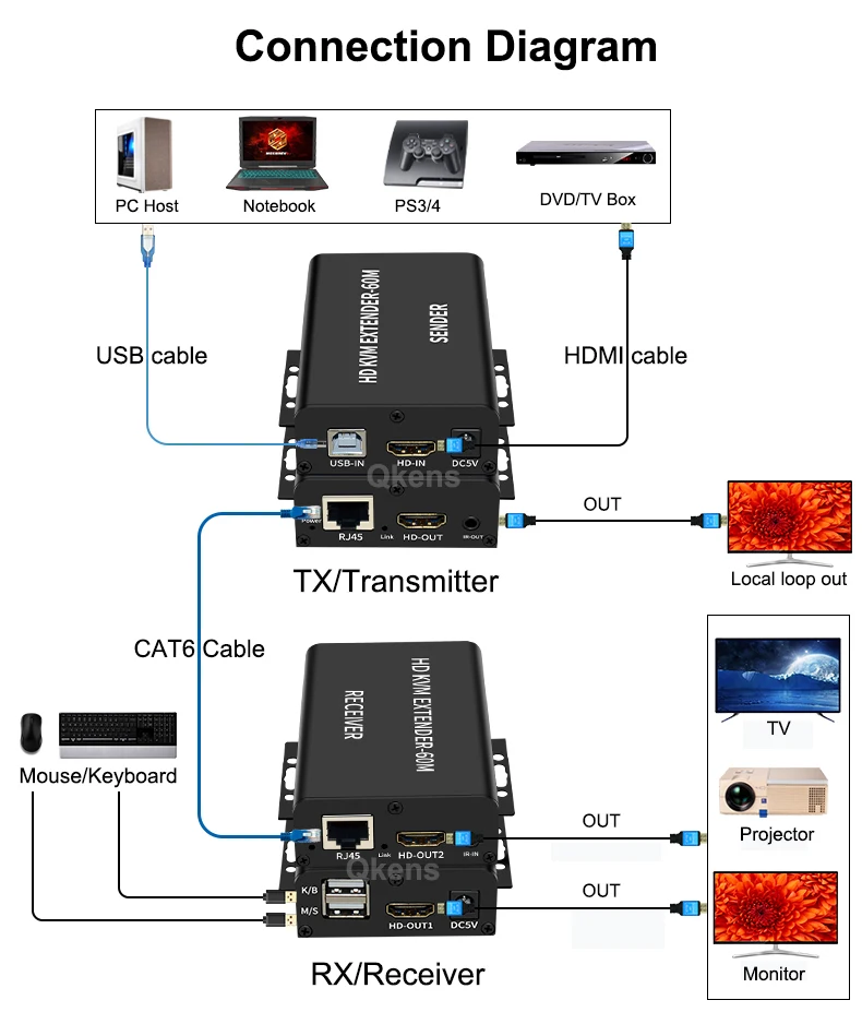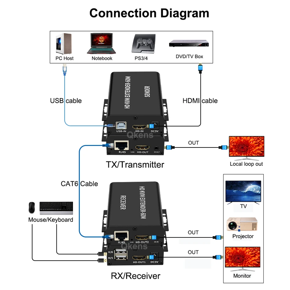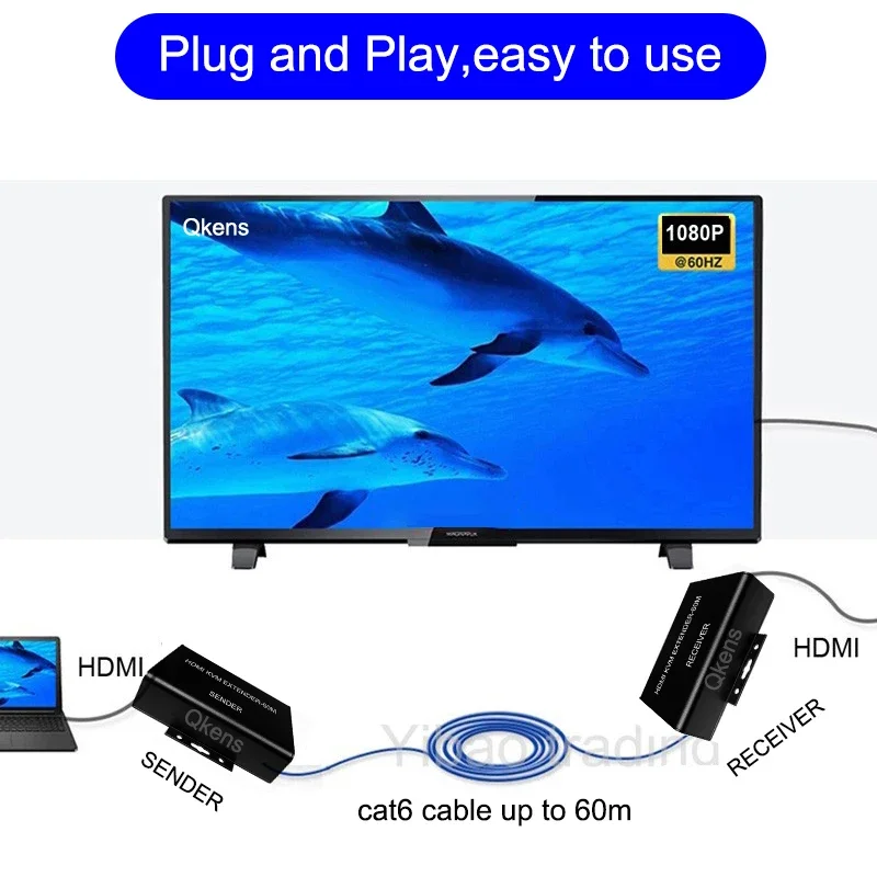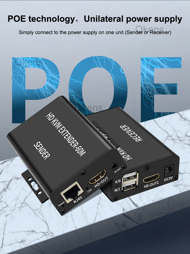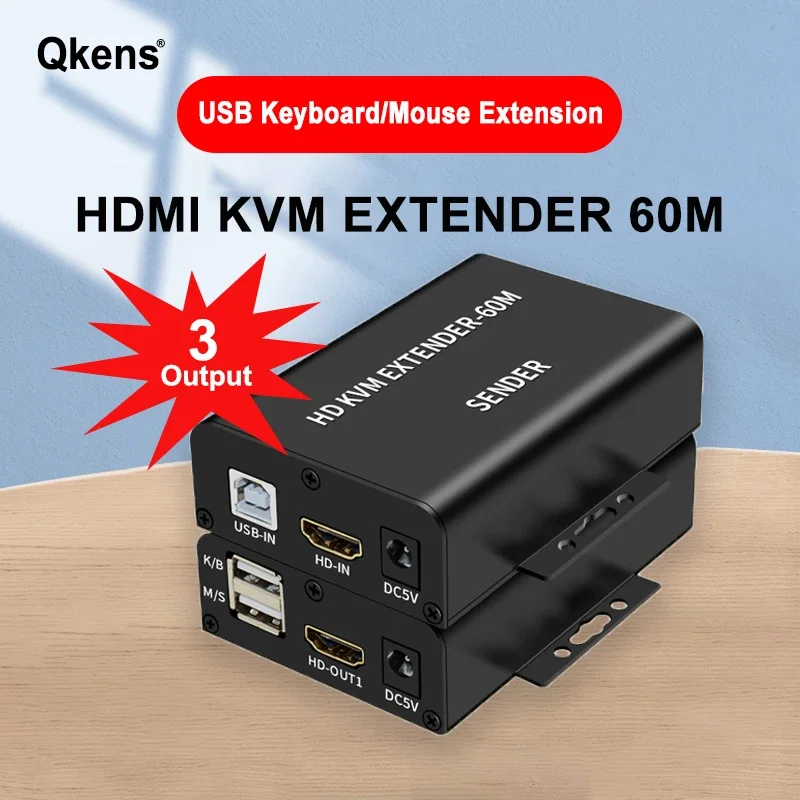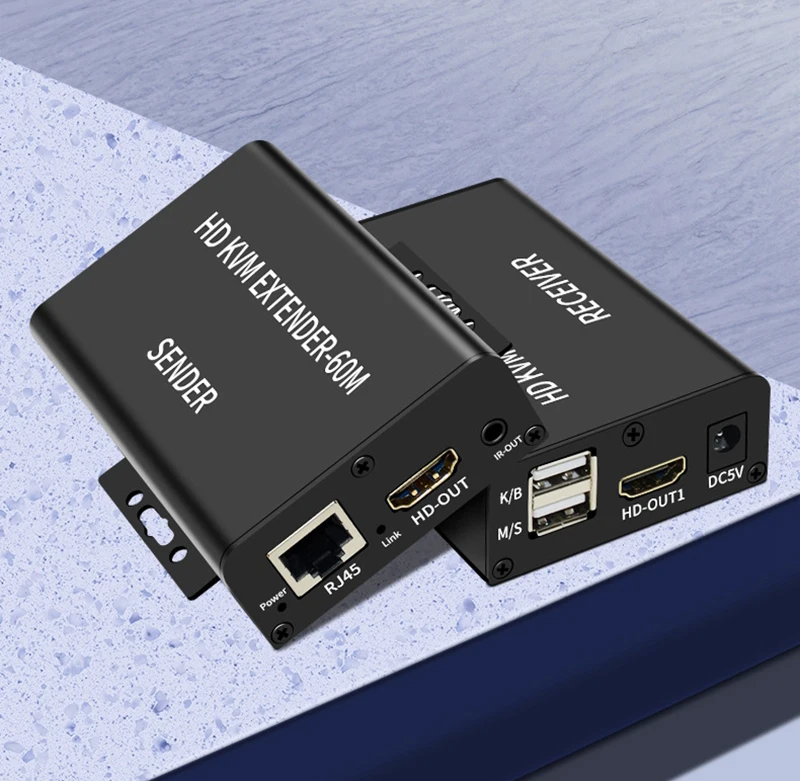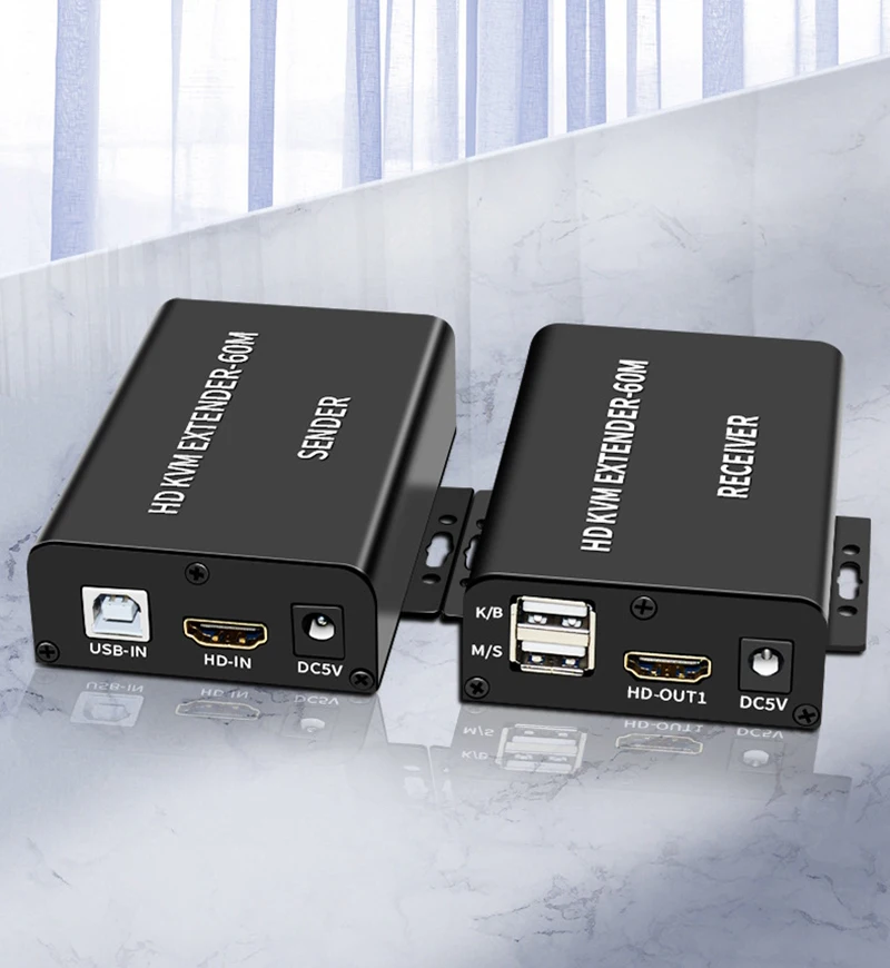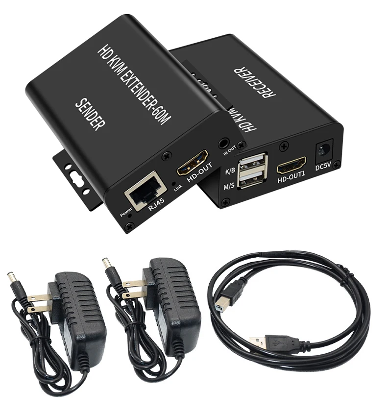 Comprar Extensor HDMI KVM de 60m, Cable Ethernet Cat5e Cat6 Rj45, convertidor de Audio y vídeo de 1080P, compatible con teclado Usb, ratón, salida en bucle HDMI