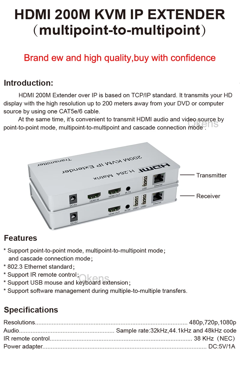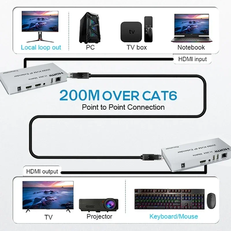 Comprar Extensor HDMI KVM IP de 200M a través de Cat6, Cable Ethernet, interruptor de matriz HDMI, divisor, transmisor de vídeo, receptor, teclado, ratón