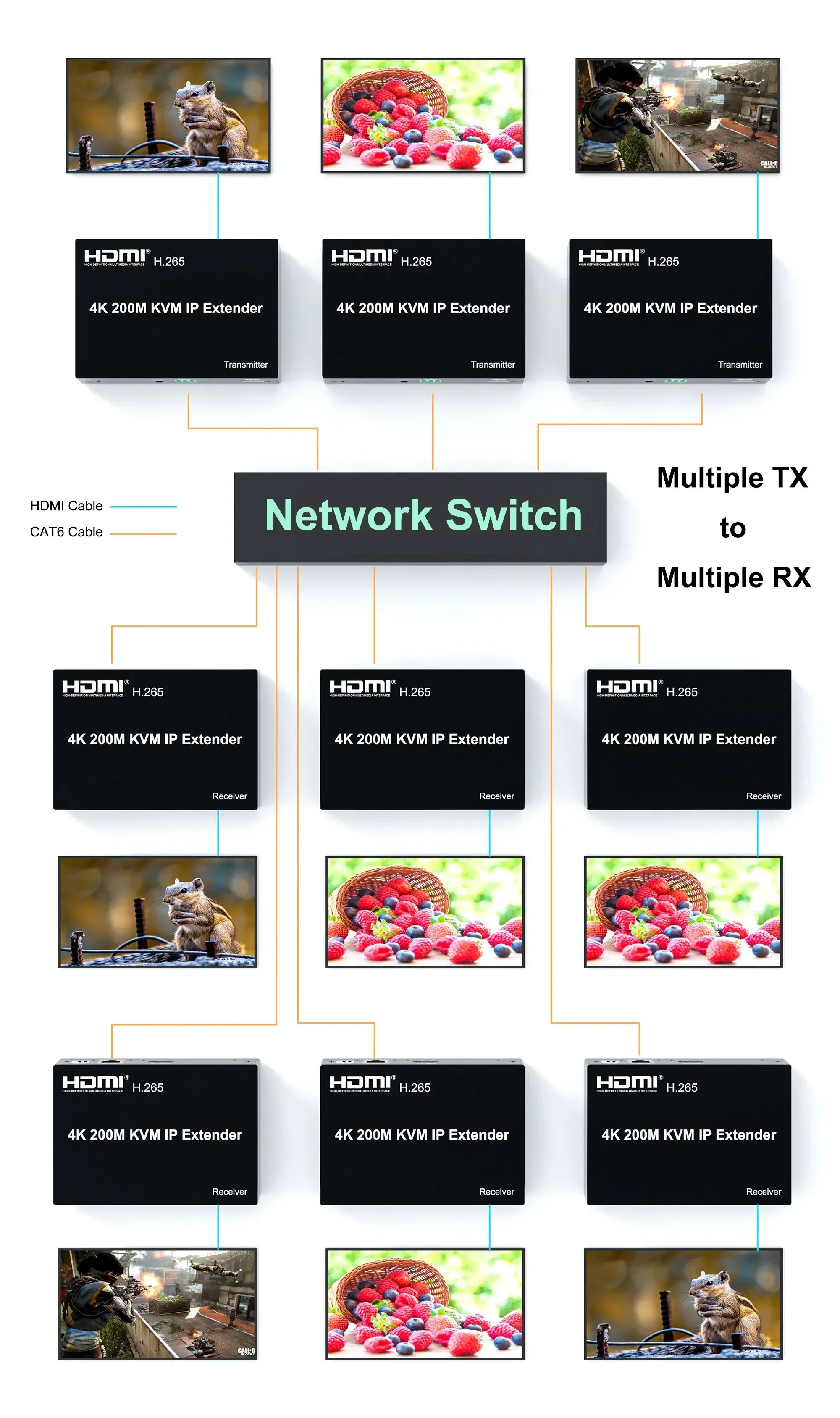 Comprar Extensor HDMI KVM IP, divisor por Cable Ethernet Rj45 Cat6, H.265, 4K, 30Hz, 200 P, 60Hz, para interruptor de red de monitoreo de cámara NVR, 1080 M
