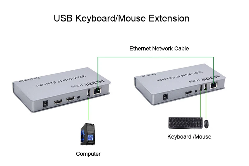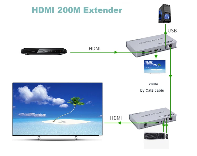 Comprar Extensor HDMI KVM IP sobre RJ45 Ethernet Cat5e Cat6, Cable convertidor de vídeo, transmisor, receptor, compatible con teclado de ratón, H.264, 200m