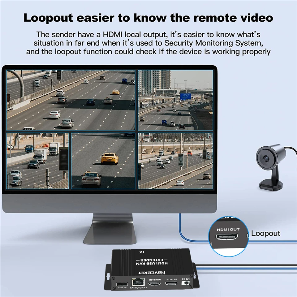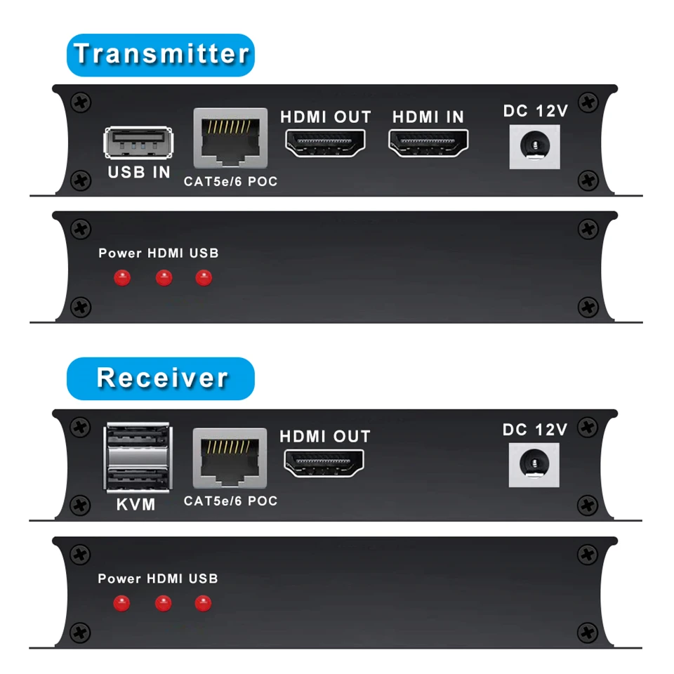 Extensor KVM HDMI 2024 con POE y salida en bucle 1080P HDMI Extensor USB 60m Sin pérdida RJ45 a HDMI Extensor Transmisor Receptor sobre Cat5e/Cat6