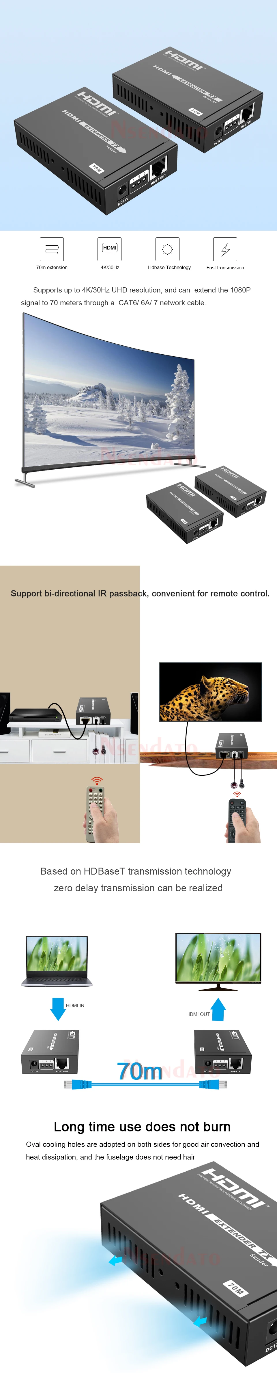 Comprar Extensor HDMI LKV375N 4K 60Hz sobre Cat6/6e 70M Cable de extensión HDMI transmisor receptor de red HDMI con HDBaseT para PS4 HDCP